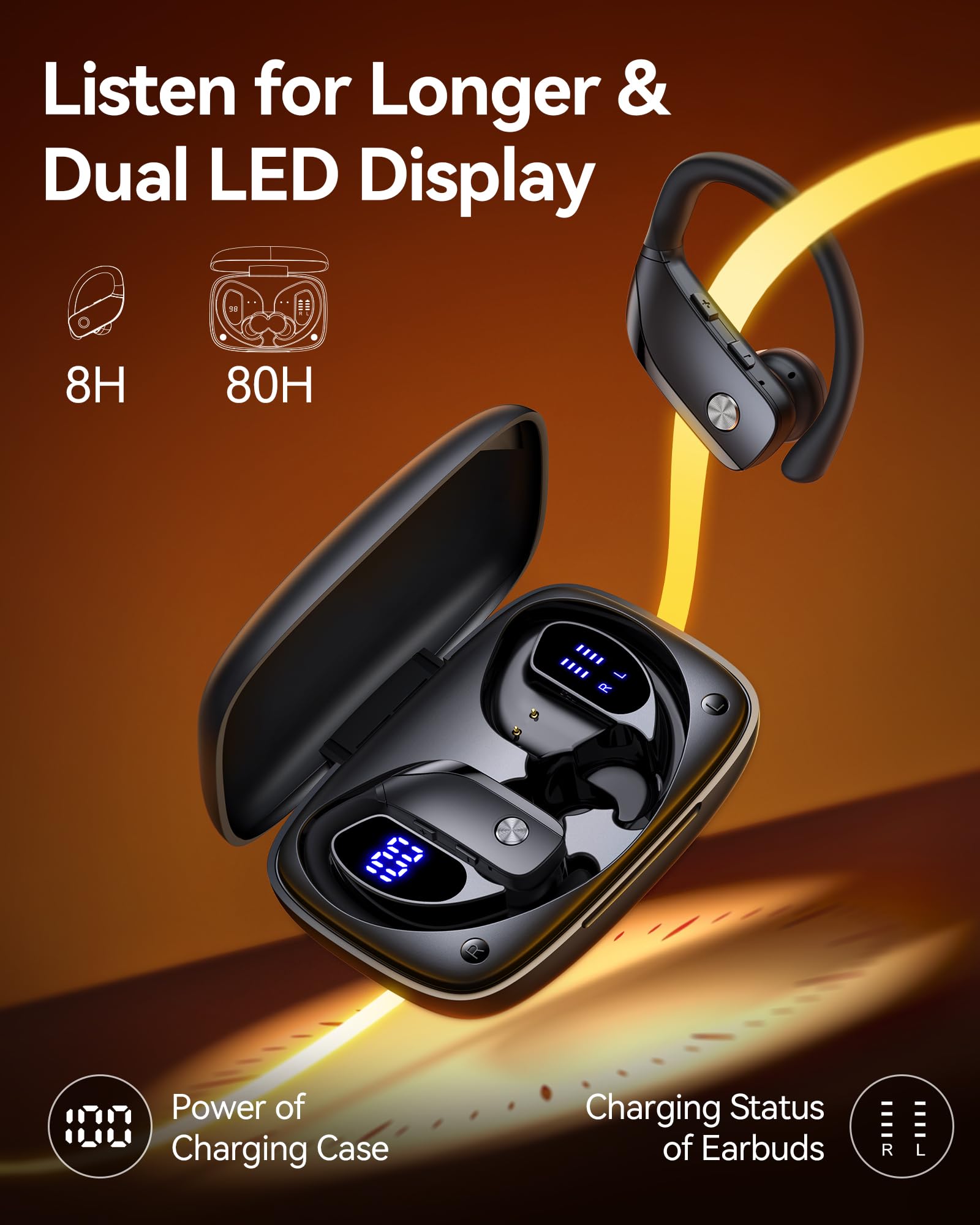 80H Battery Life & Dual Digital Display: These AI translation earbuds real time deliver up to 80 hours of total playback with the charging case, supporting long use for music, travel, and real-time translation in meetings. Powerful features need powerful battery life for truly uninterrupted performance. The audifonos traductores inglés español charging case is equipped with a digital display showing the remaining battery for both earbuds and case, keeping you informed and confident at all times.