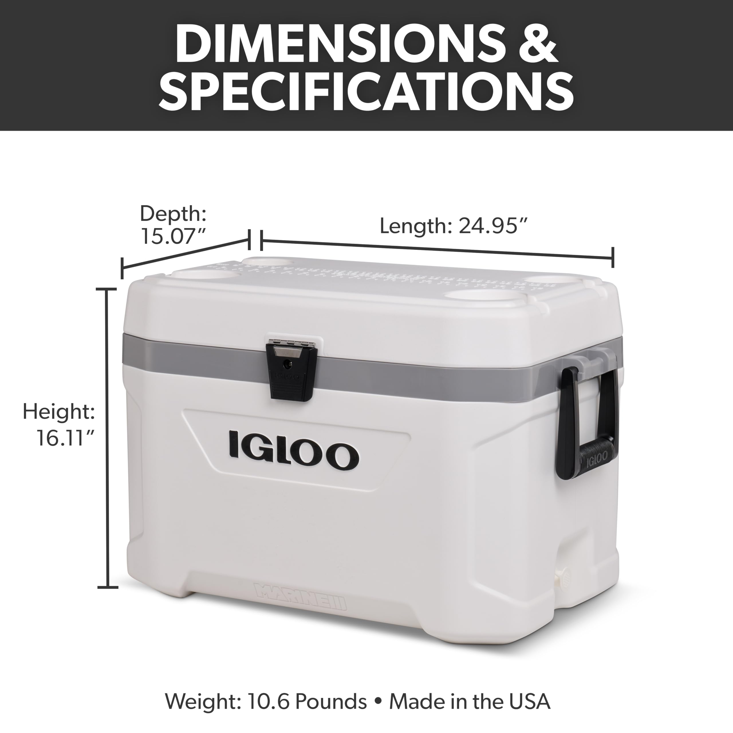 Product Description Igloo Introduces the Marine Ultra Product Family. This family features a full suite of marine-grade features, from UV protection to rust-proof stainless-steel hardware. This fishing-ready coolers are built to withstand the harsh, wet environments of life on a boat, keeping drinks and snacks (or the catch of the day) cold and fresh. From the Manufacturer Igloo