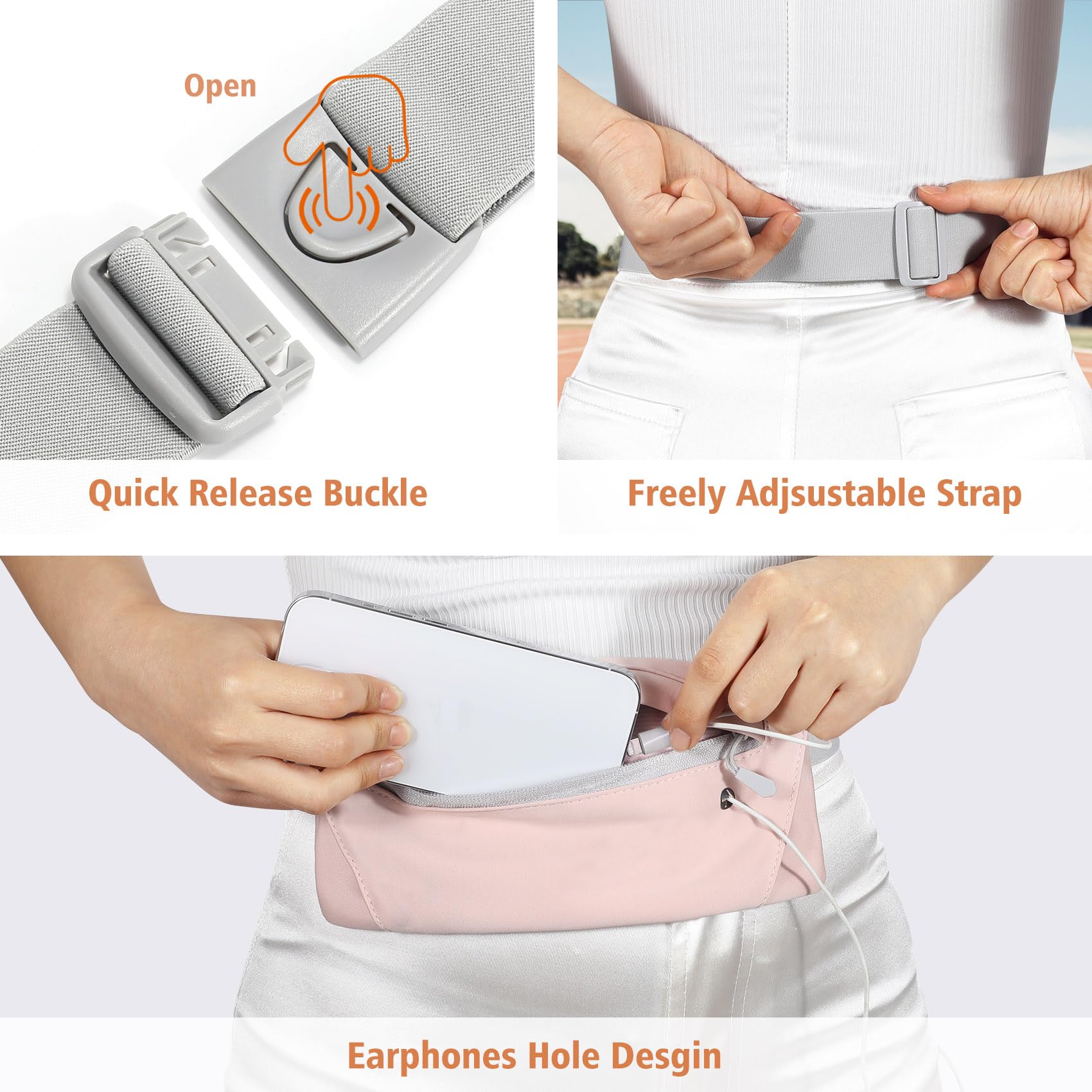 Premium Material - Running waist belt is made of super soft nylon, lightweight and breathable. Elastic strap makes this crossbody fanny pack more comfortable to wear and fits your body well. Earphones hole design allows you to enjoy music freely.