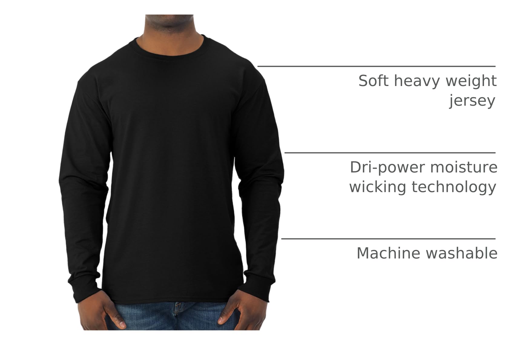 Description The Jerzees long sleeve t-shirt is made with dri-power technology that wicks away moisture to keep you cool and dry throughout your day. We also included a rib collar and cuffs for added durability, and a lay-flat collar for comfort. If you are looking for a versatile shirt that you can wear throughout the transitioning seasons, then look no further.