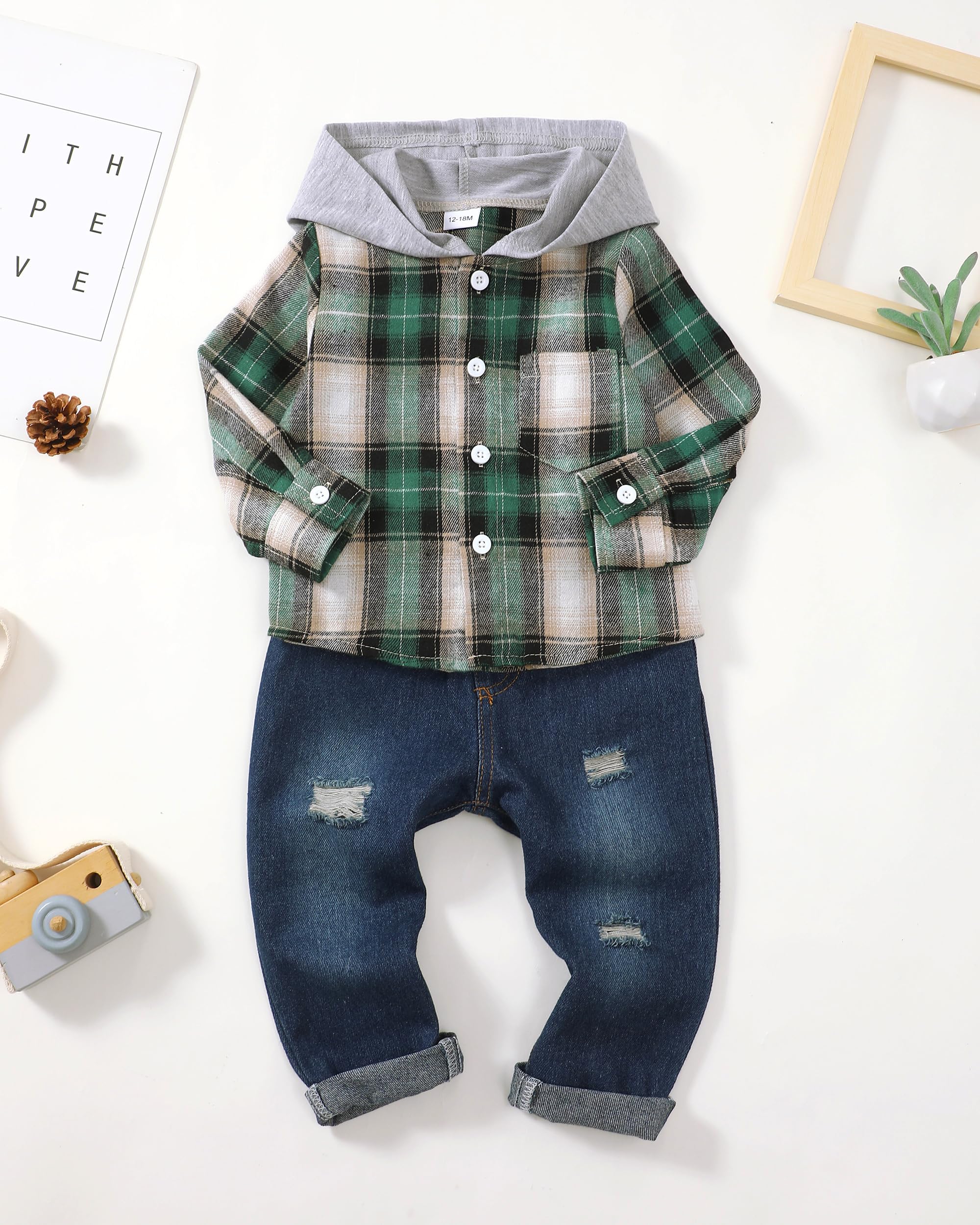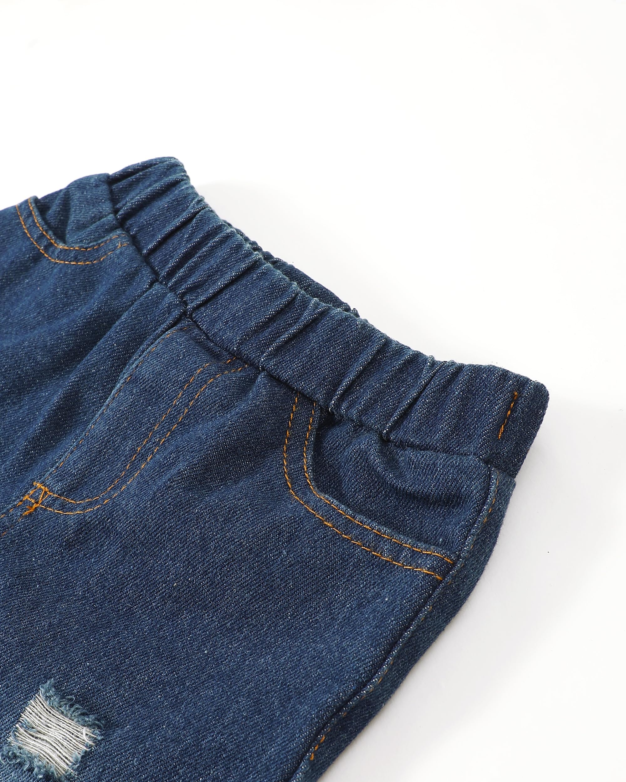 Package: 1 x toddler boy hooded sweatshirt + 1 x ripped denim pants. Hand wash is suggested at the first time. The toddler outfits boy do not fade, no shrinking and pilling after machine or hand wash.