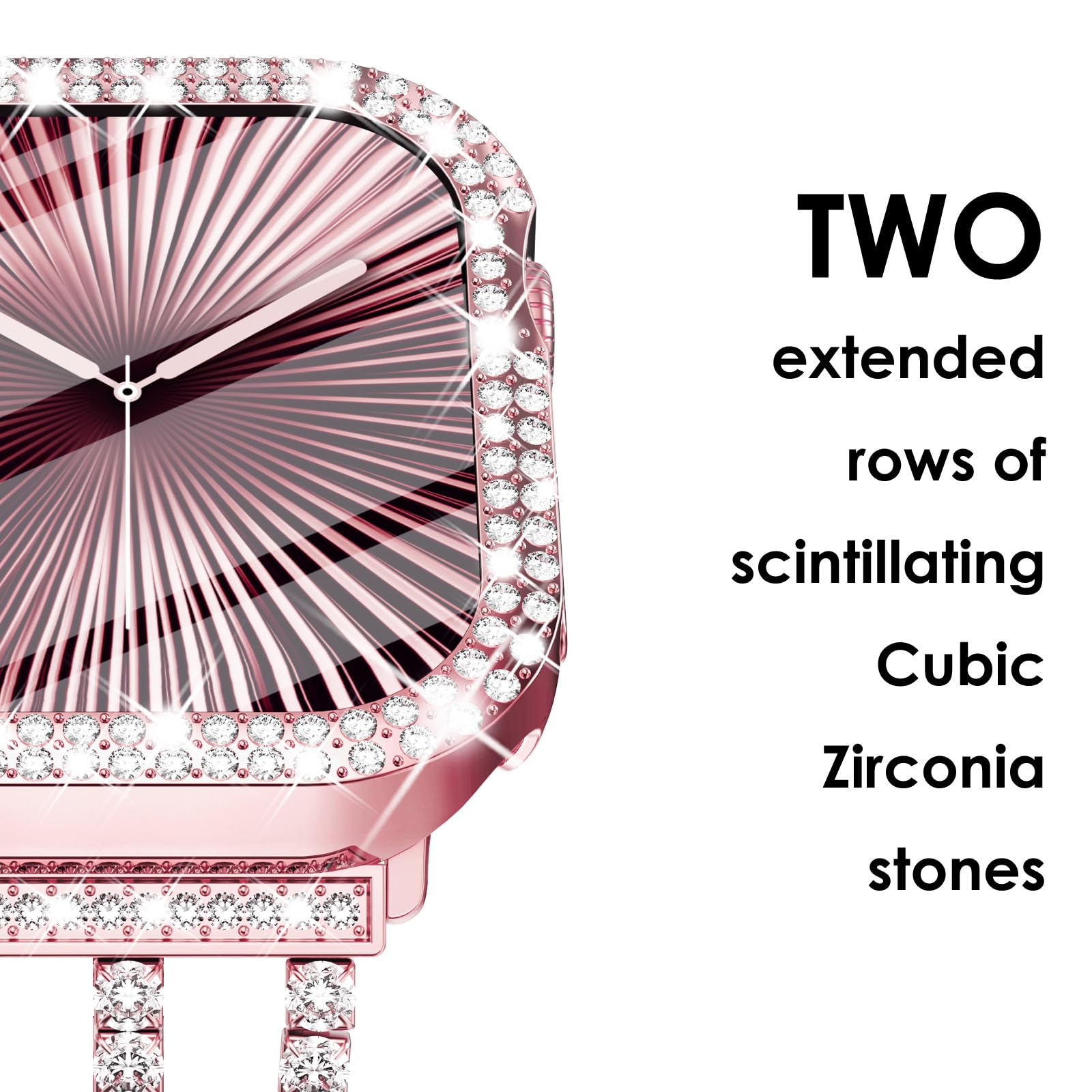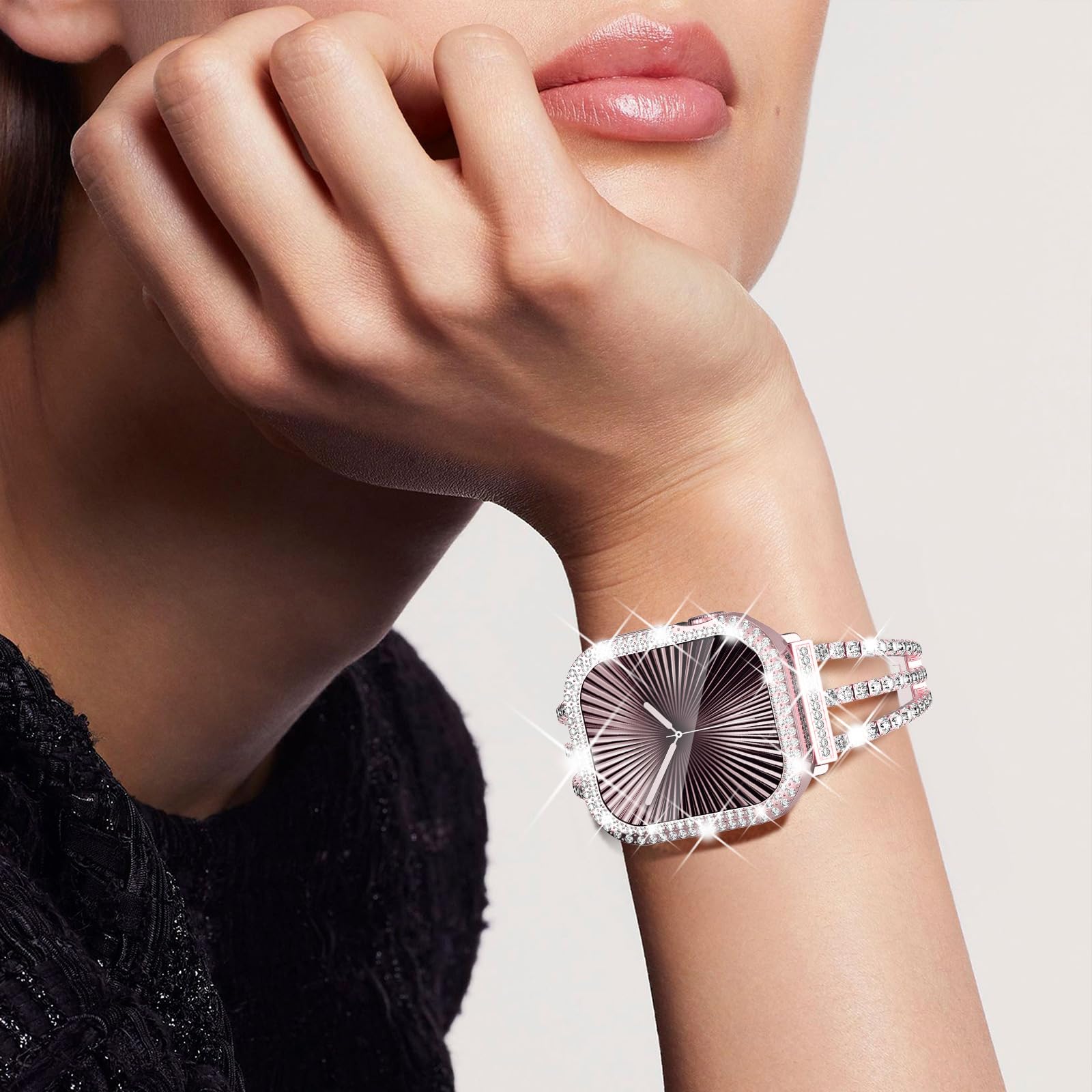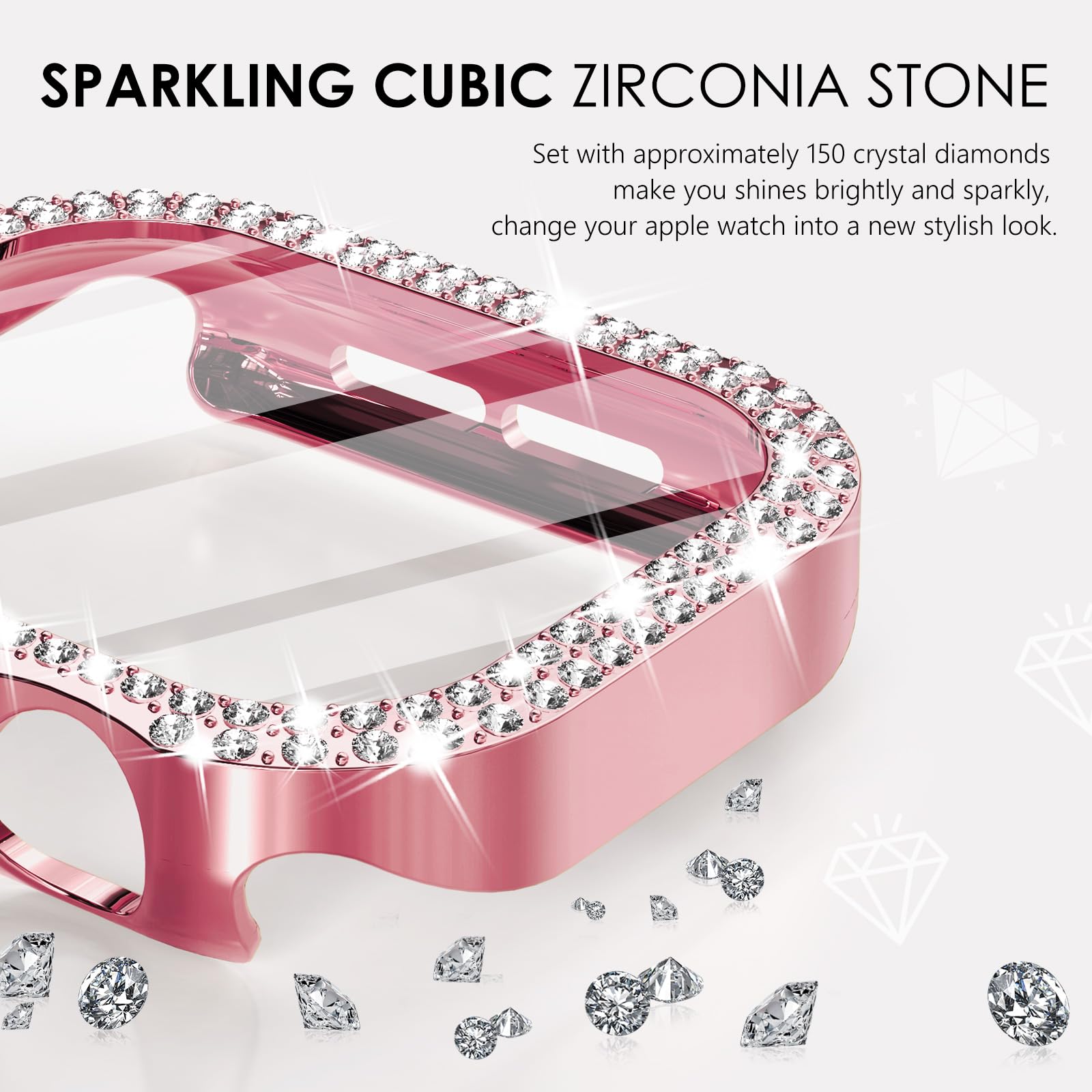 Double Cubic Zirconia Halo: Apple watch cover adorned with over 150 cubic zirconia crystals, perfect for upgrading a casual outfit or complementing a luxurious evening look, it allows your watch to double as a handy gadget and glamorous jewelry