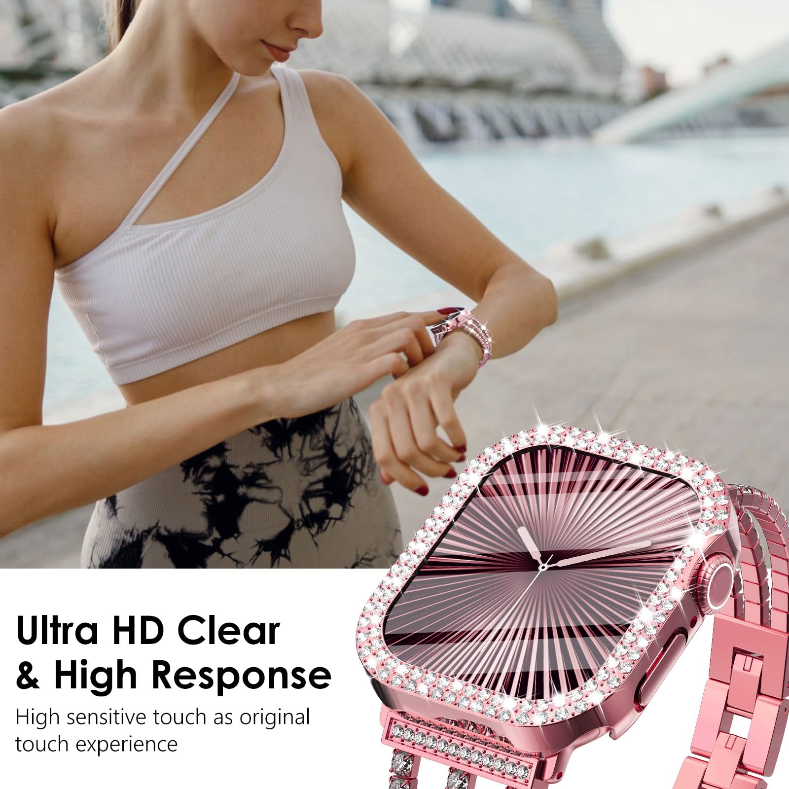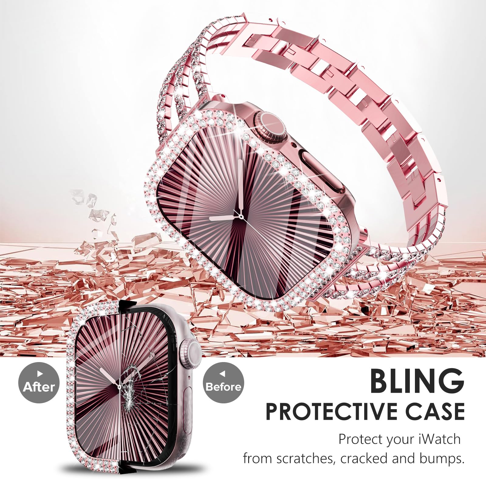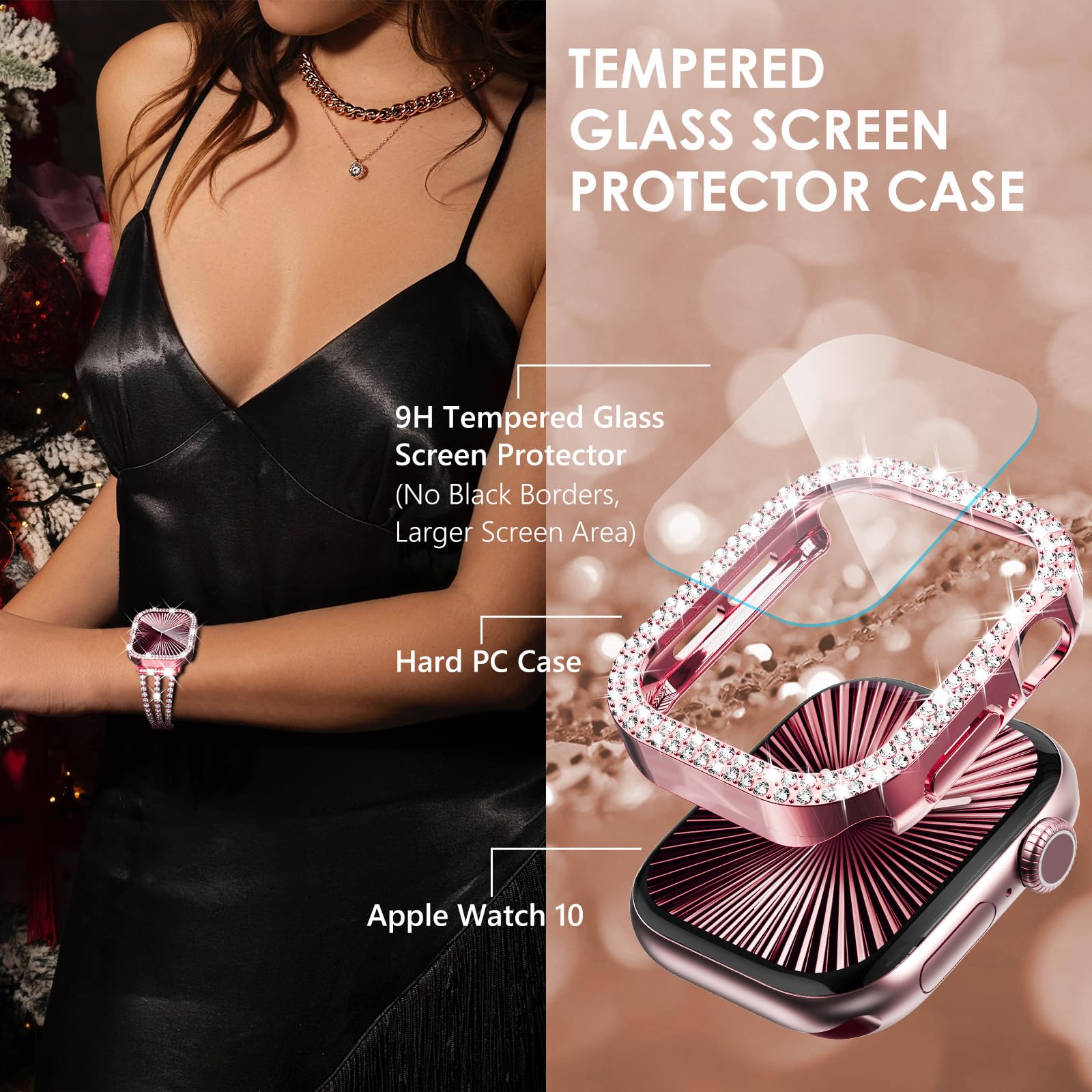 Bling apple watch case with tempered glass screen protector only compatible for apple watch series 10 series 11 46mm; Switch up the look of your apple watch 10 to match clothing or jewelry easily and quickly