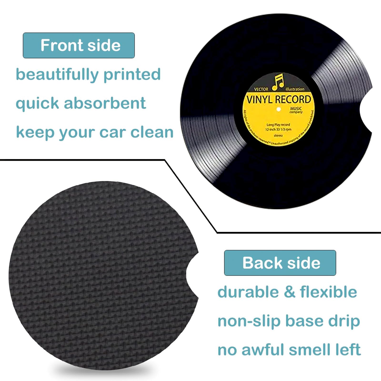 ✅Retro Vinyl Record Design: Upgrade your ride with our Retro Vinyl Record Themed Car Coasters! Perfect for Retro Vinyl Record lovers gifts, these durable,non-slip coasters add a touch of wilderness to your vehicle. Easy to clean, they’re a must-have for road trips and daily commutes. Embrace the legend today!