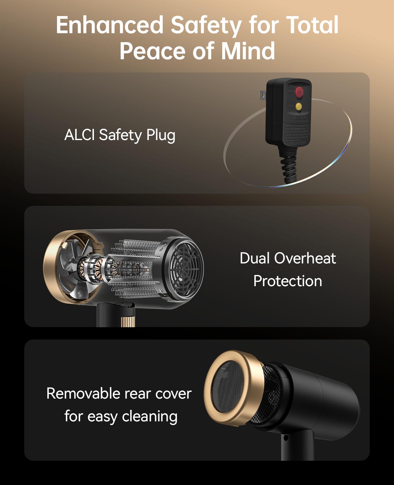 【Hair Dryer with Diffuser】 With 1 Concentrator & 1 Diffuser for All Hair Types, Concentrators nozzle is ideal for precision styling on straight, smooth hair. Diffuser designed to enhance your natural curl and texture,Designed with double safety removable back cover, your hair will not get sucked into the blow dryer easily, and it is easy to clean.Kind Tips: Please do not touch the air nozzle during use to prevent burns.