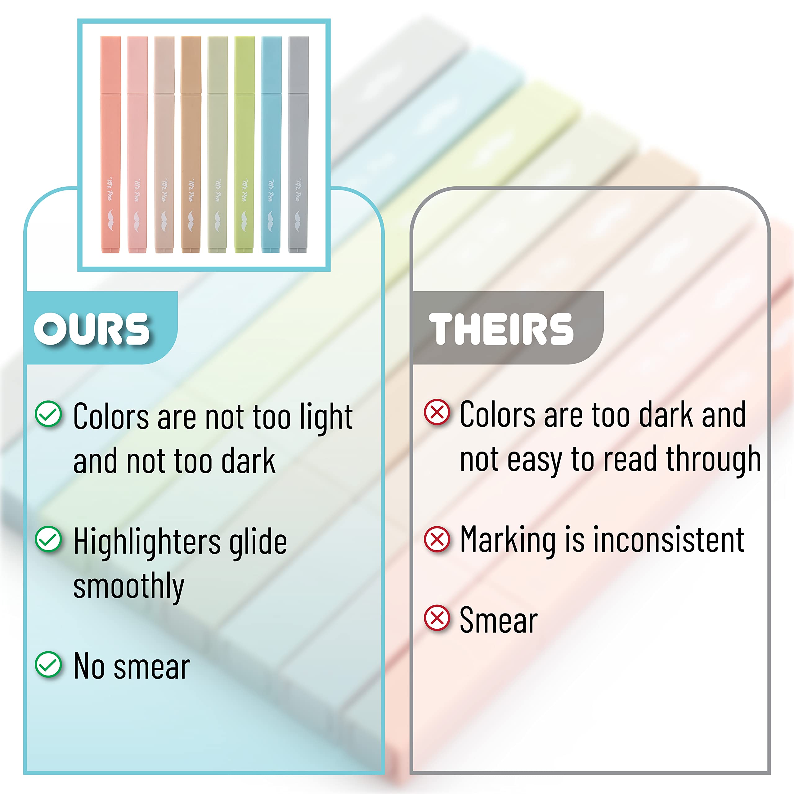 Make your notes and papers pop with our soft and gentle highlighters! This package includes 8 highlighters in non-neon, assorted colors. Our highlighters are perfect for making your work and school life a little bit brighter.