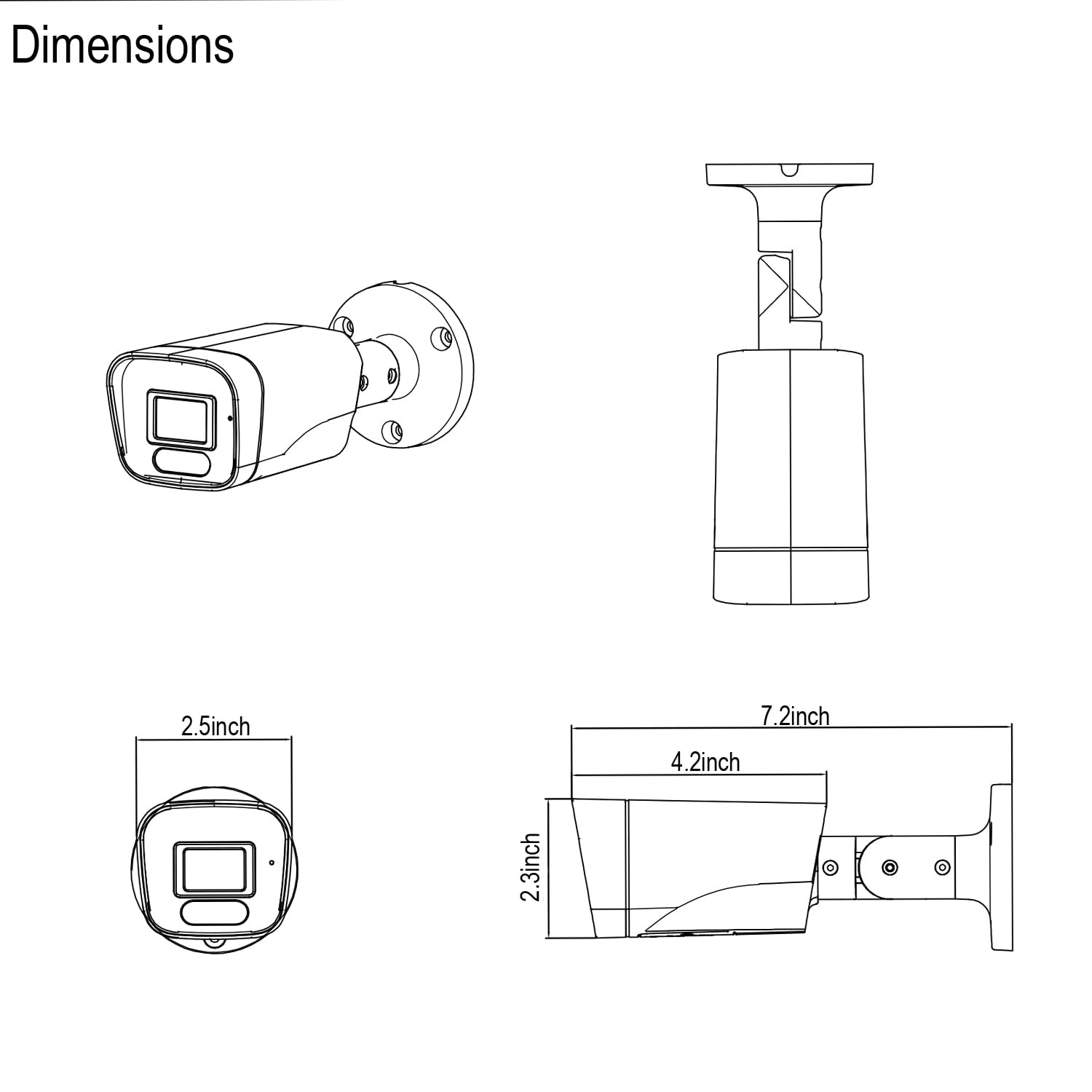 【Indoor and outdoor use weatherproof】- This camera works indoor and order, come with IP66 weather-rated full metal housing, operating temperature is -40°F ~ 140°F