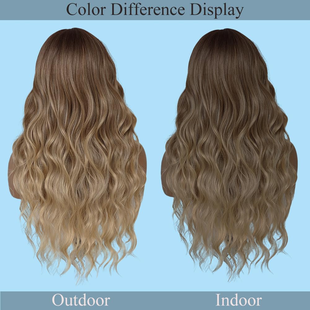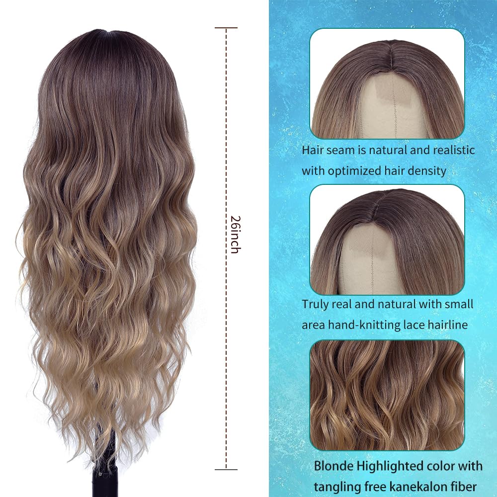 Long Blonde Wig for Women 26Inch Wavy Curly Ombre Blonde Hair Wigs Synthetic Hair Replacement Wig Heat Resistant Hair Wig for Daily Party Use(26'' Ombre Blonde)