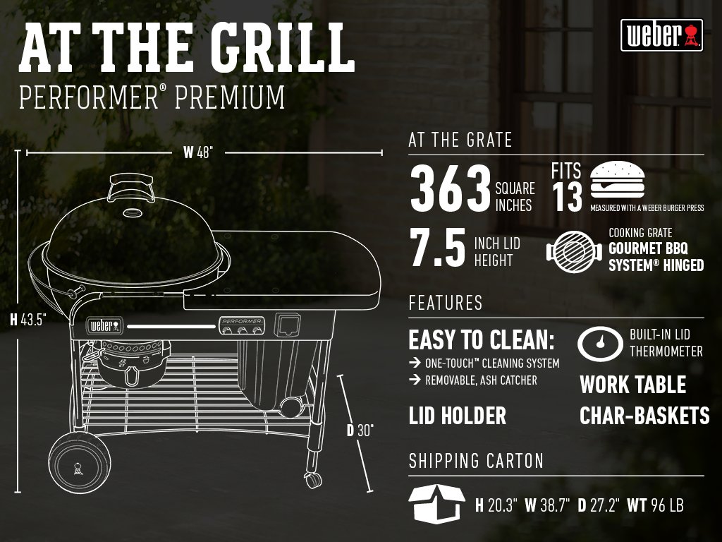 Unbeatable performance with convenient features bring charcoal grilling to everyday life. Prep food on the work table, hang grilling accessories from the tool hooks, and even store charcoal in the CharBin under the table. With everything you need outside, charcoal grilling is your answer to every family meal.