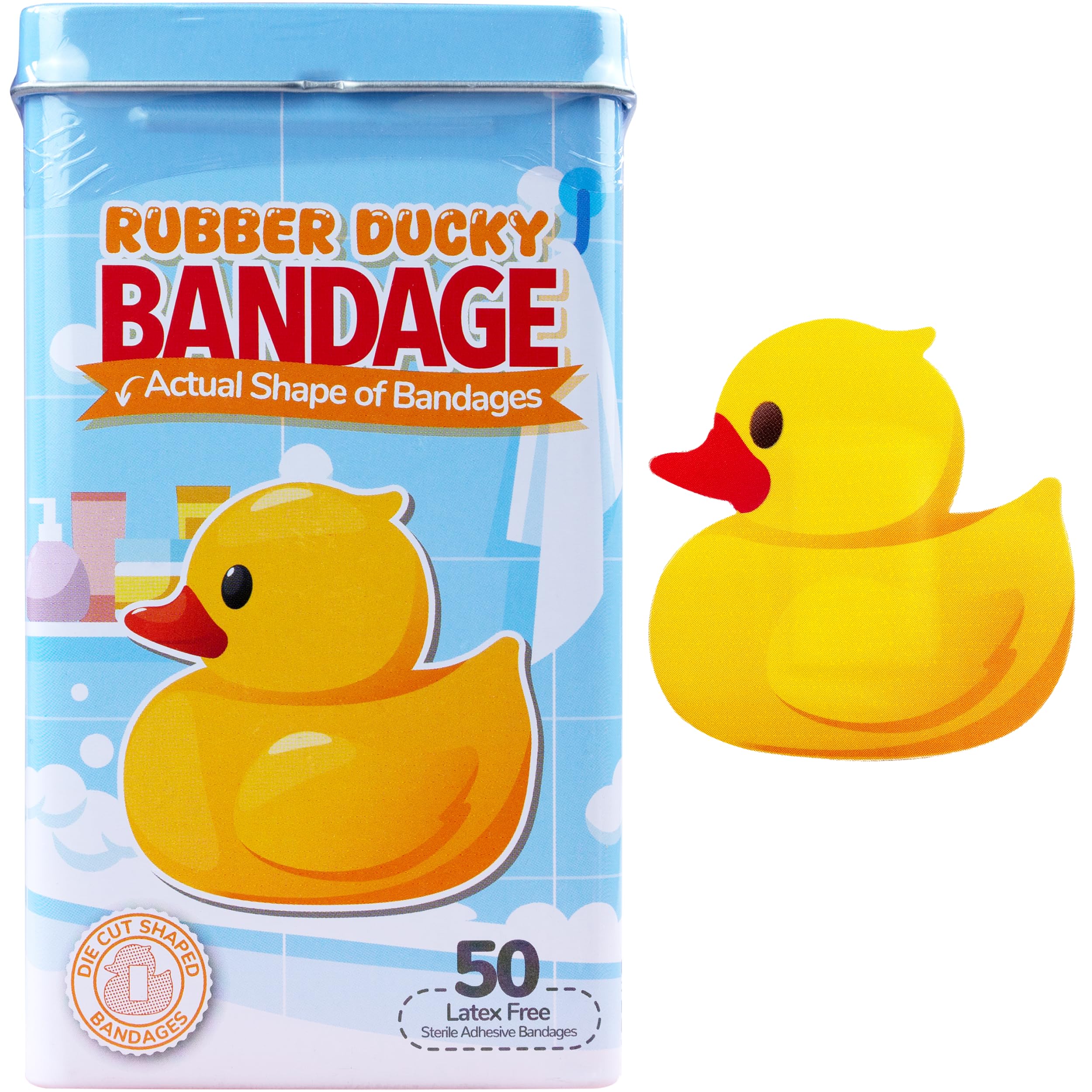 50 RUBBER DUCKY BANDAGES: Rubber duck-shaped adhesive bandages tin helps protect cuts, scrapes, and minor wounds while making healing less stressful