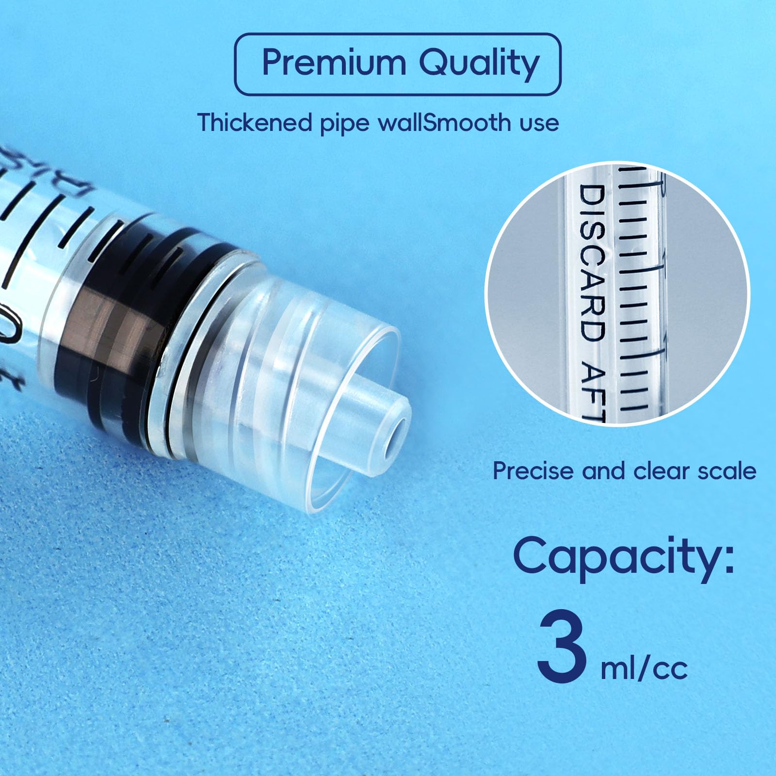 3 ml Syringe Precise Scale Design: The transparent barrel of the luer lock syringe features clear scale markings for easy and accurate measurement of 3ML liquids