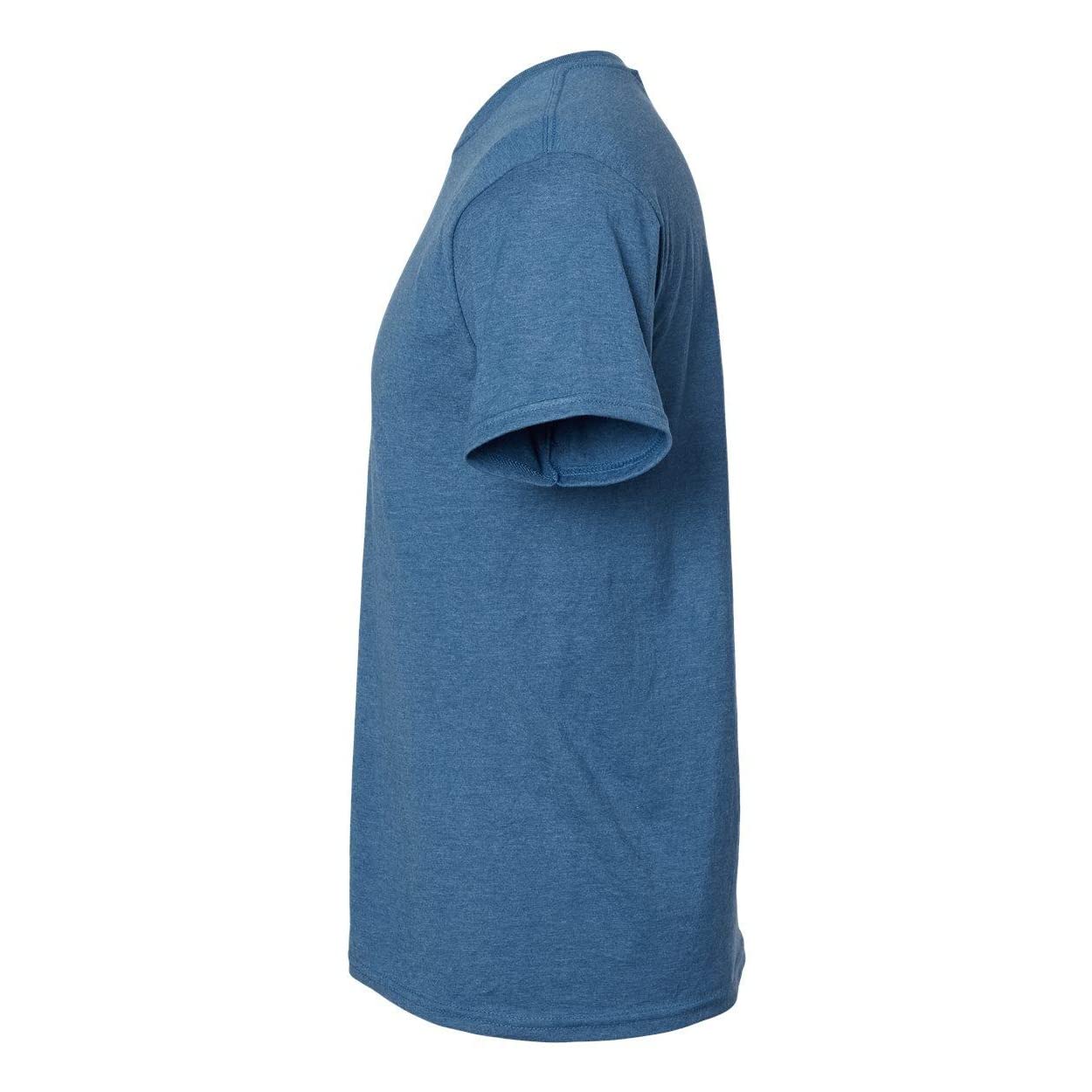 Shoulder-to-shoulder taping. Set-in narrower ribbed collar. Light Steel and Red Pepper Heather are 90/10 cotton/polyester