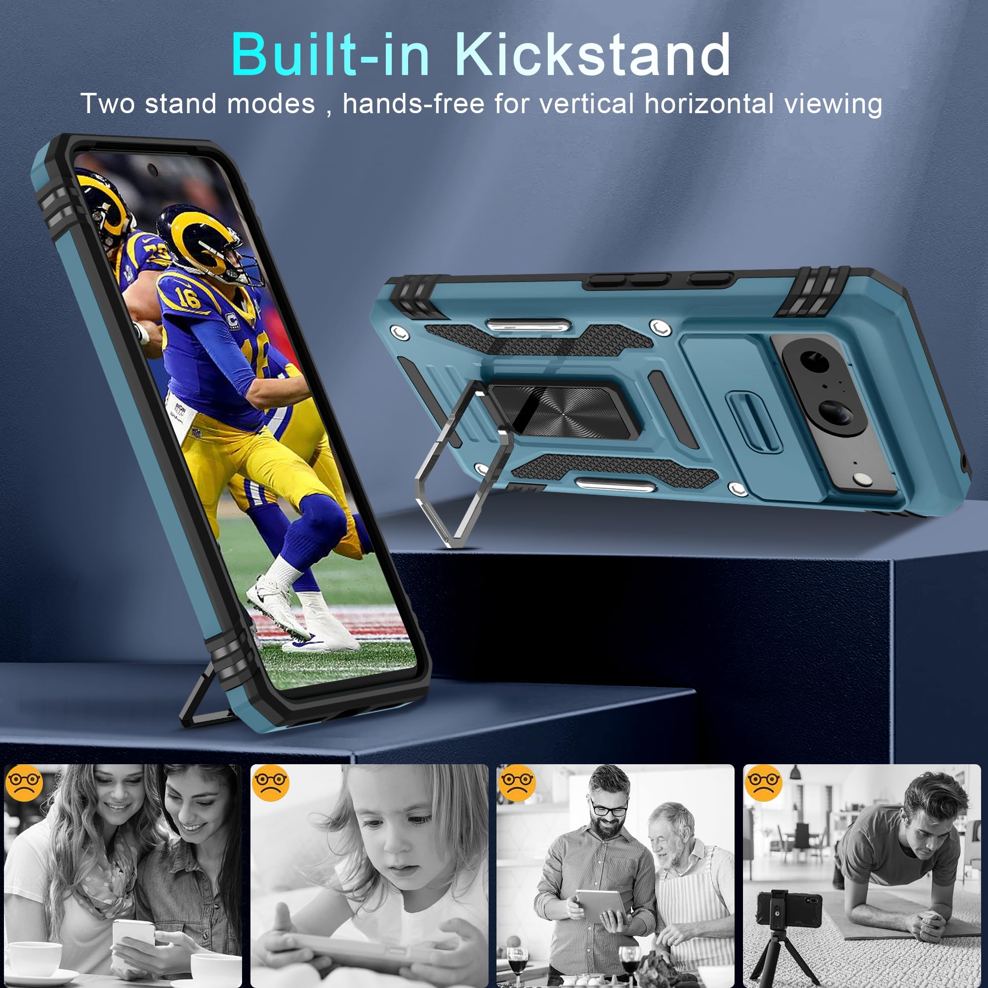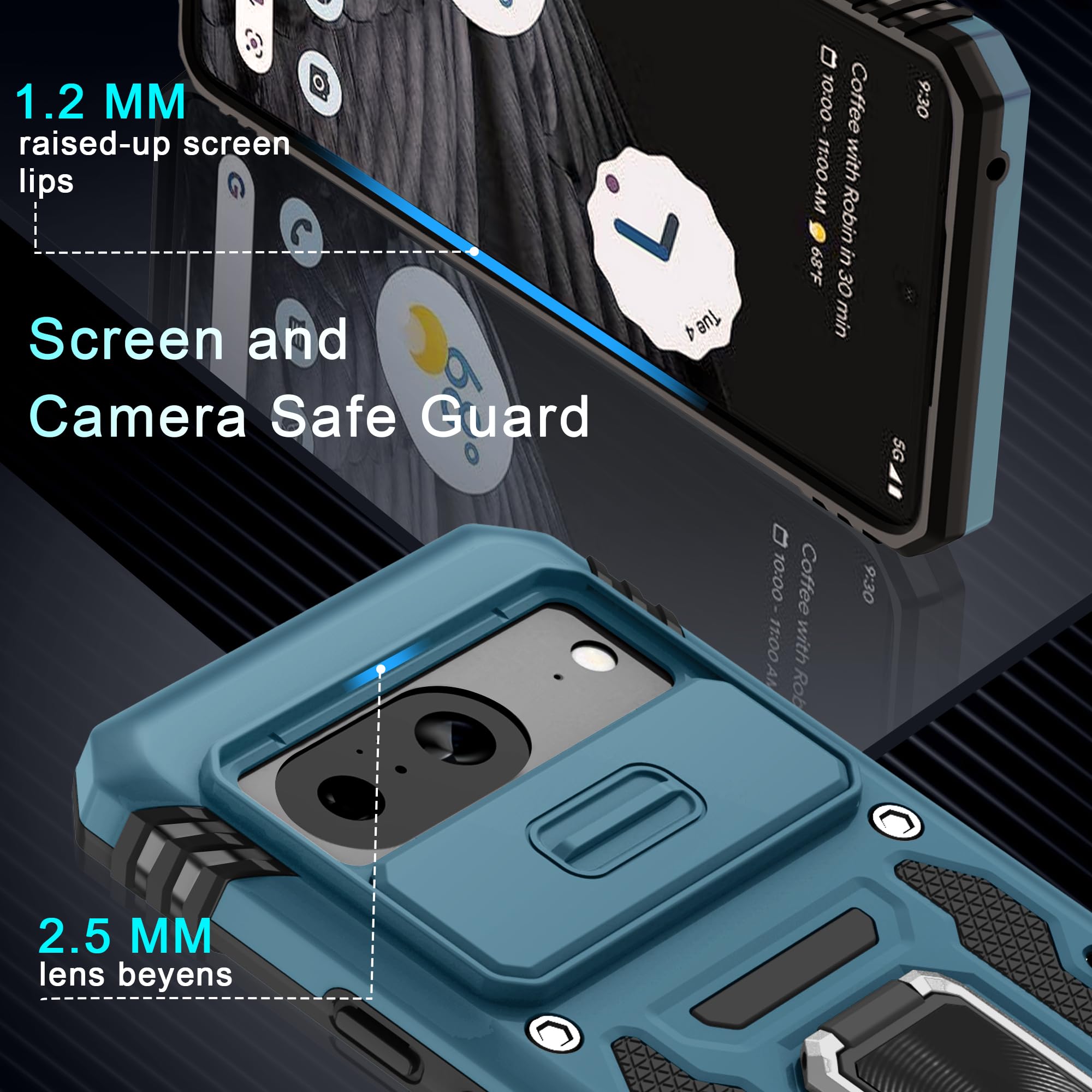 Compatible with: Armor Case with sliding camera cover specially designed for Google Pixel 8 6.2 Inch. NOT fit for other device! The precise cut out fits each button,camera,speakers and ports precisely, easy to press and access