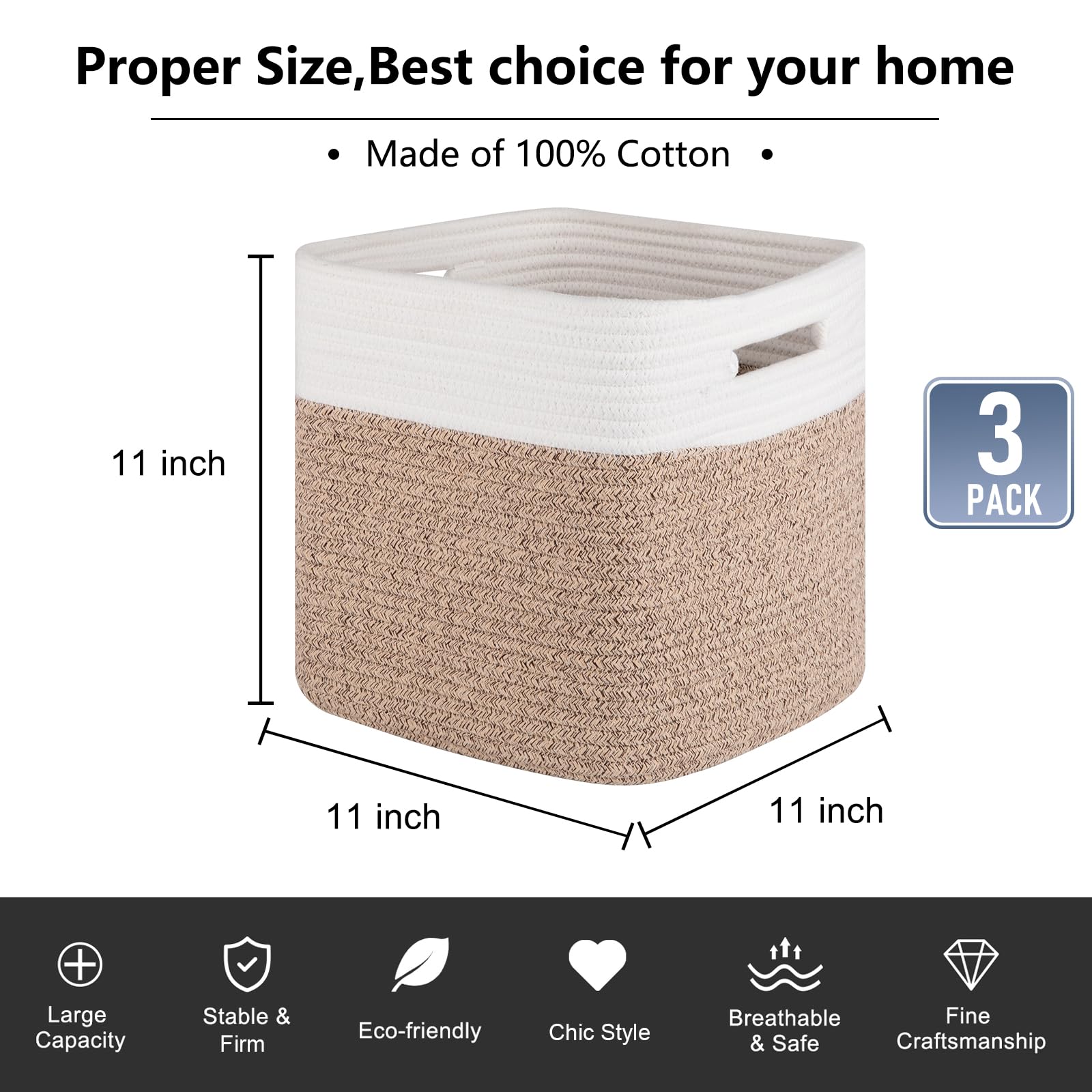 Well-Sized Bins with Reinforced Handles- Set of Three (3) Basket:11"x11"x11"inch, large capacity, convenient to store more daily necessities.Our baskets are handmade with flexible material, which may result in slight size variations. Measurements should be taken from the center of each side to the center of the opposite side after the bins are fully unfolded & expanded