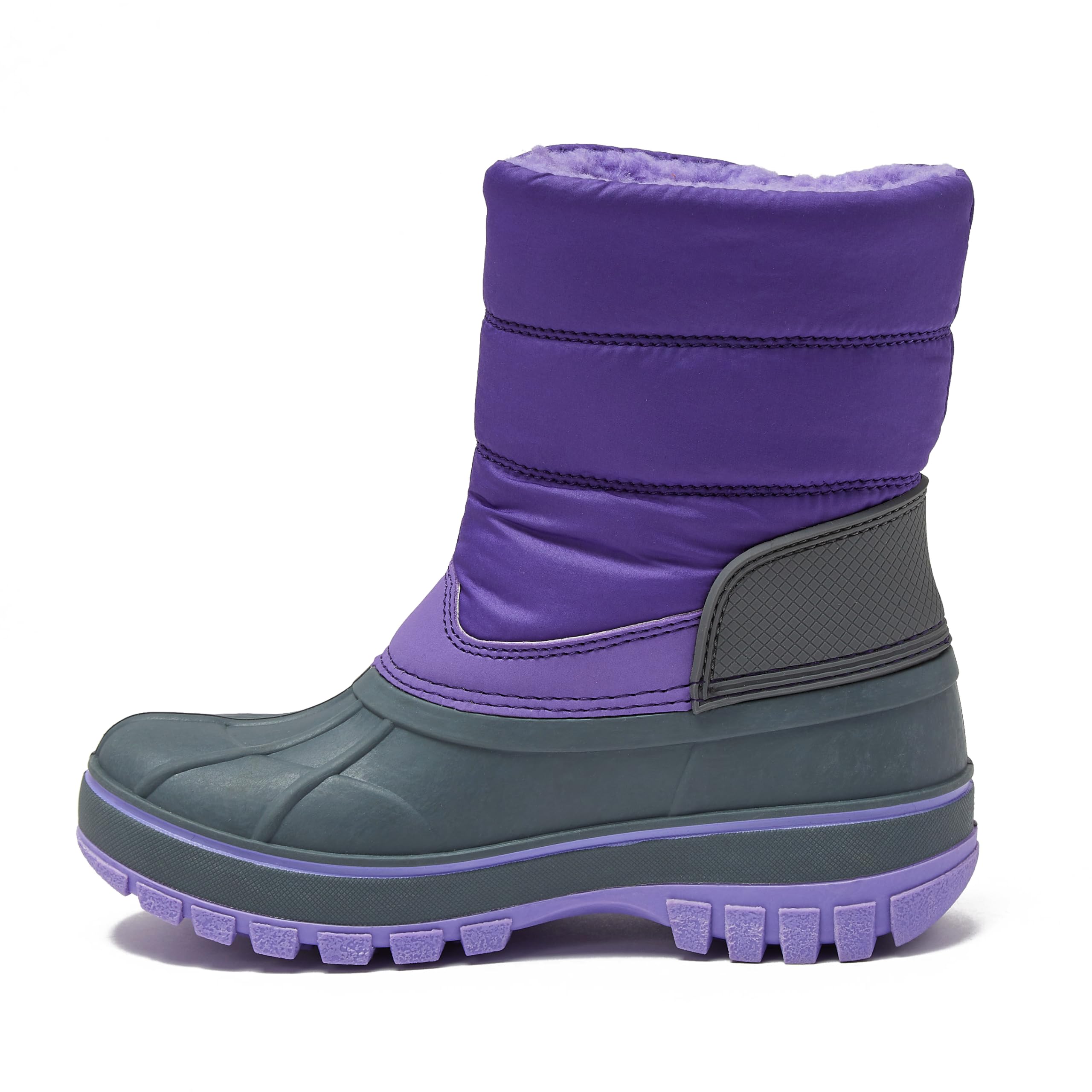 WATERPROOF FLEECE LINED KIDS & TODDLER SNOW BOOTS - Our winter boots for boys and girls size 5 to 10 toddler or 11 little kid to big kid 7 for boy and girl come in classic & versatile unisex colors including black, navy, light blue, pink or purple.