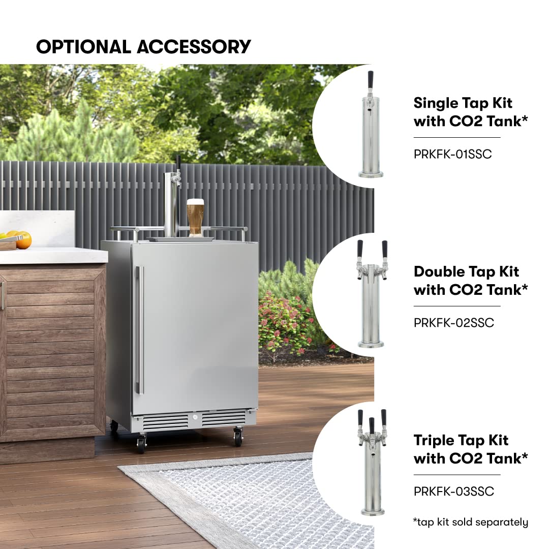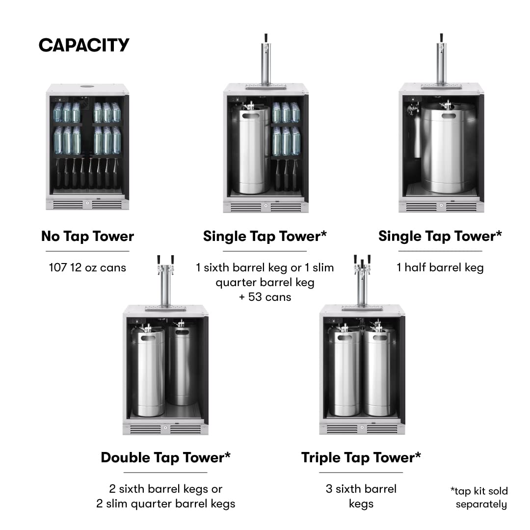 Complete your dream setup with one of our single, double, or triple tap kits (sold separately), designed to fit perfectly with your kegerator. For added convenience, you can also choose from optional accessories like casters and a drink guardrail, perfect for freestanding installations.