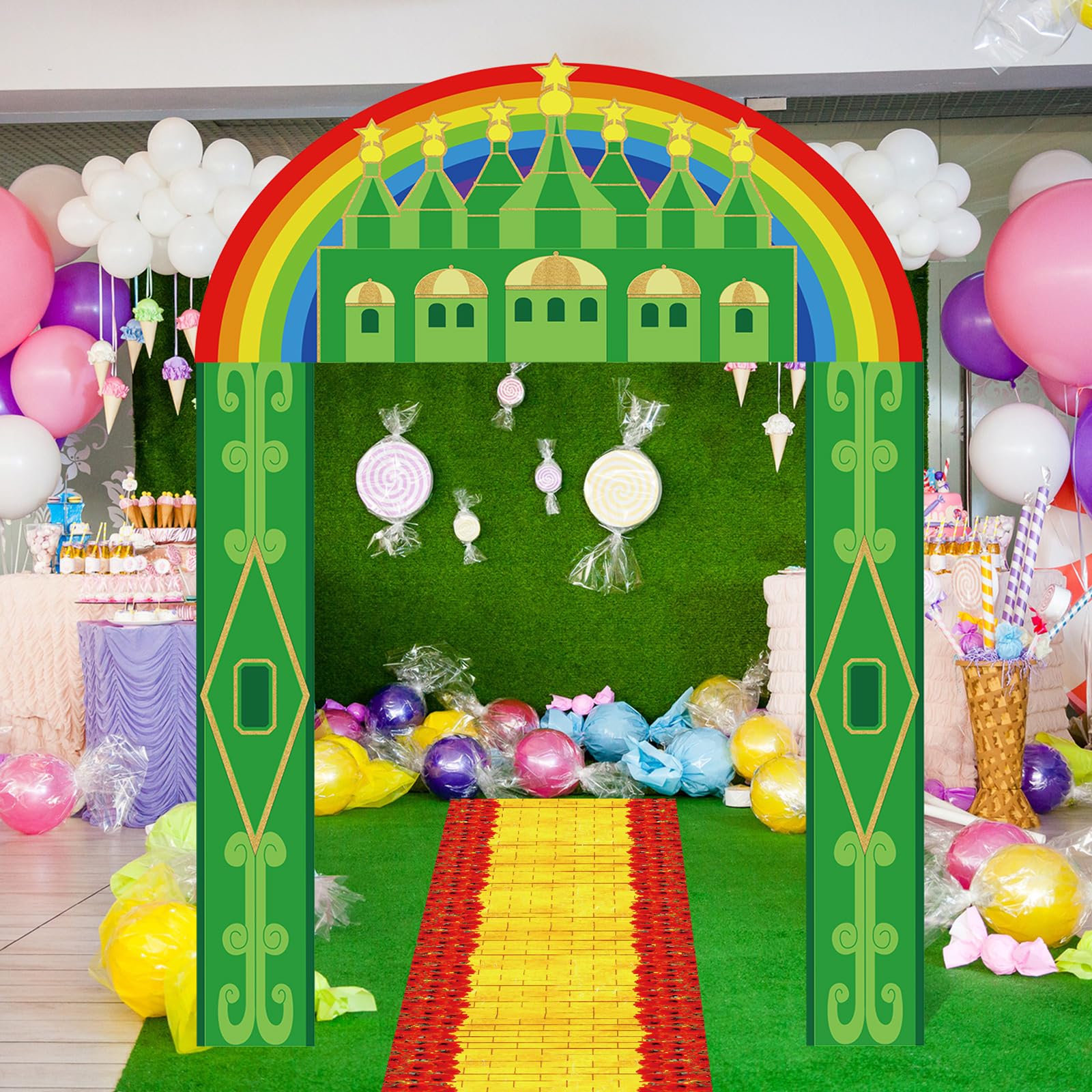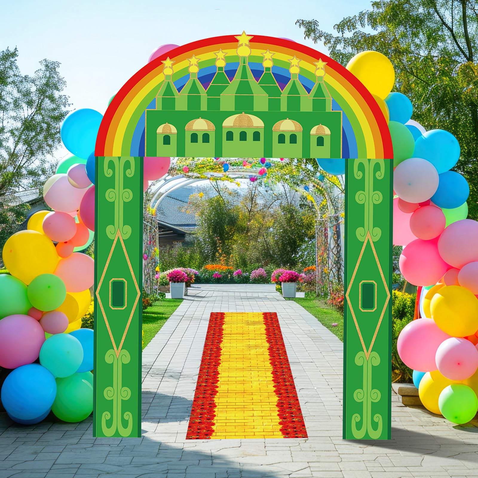 Easy to Install: the Emerald green Castle yellow brick floor entryway party decorations comes with ribbon; You can hang it with the ribbon, put the Yellow Brick floor runner to the baseplate to easily create a nice party entrance decoration