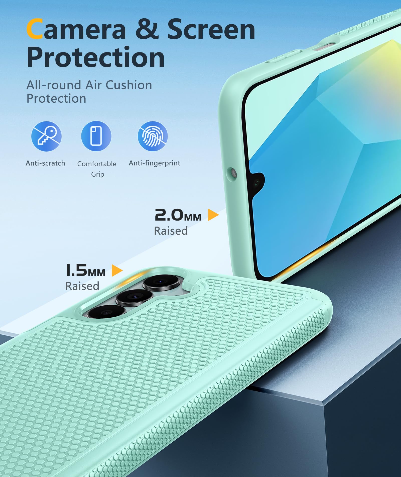 Practical Design: Combines grip and anti-slip design with texture on sides and back for a secure hold, reducing accidental drops, matte finish that resists fingerprints, paired with soft-touch, responsive buttons