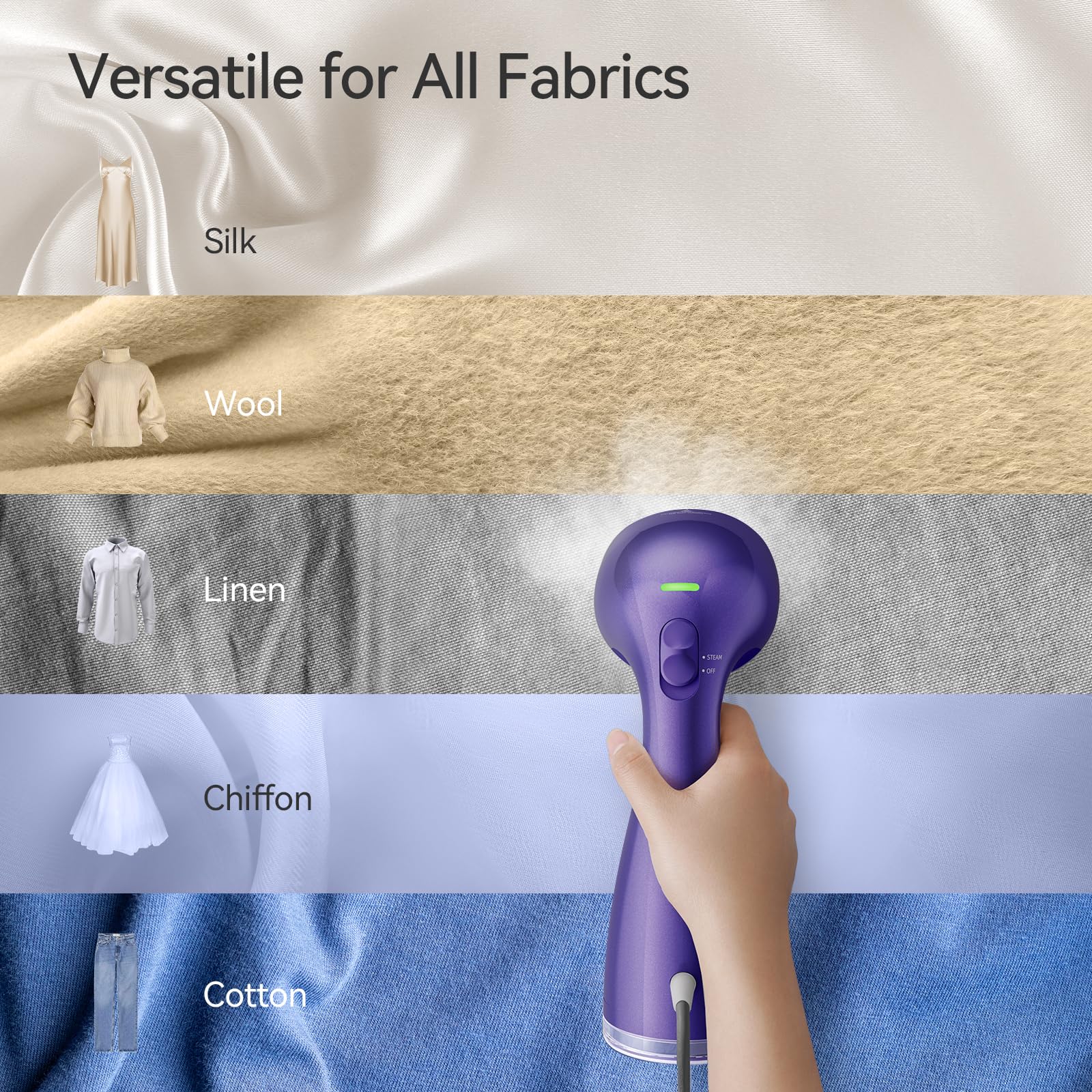 [Strong Penetrating Steam] This steamer creates strong penetrating steam and can be used for a wide range of fabrics (chiffon/silk/wool/cotton/linen/nylon, etc.).
