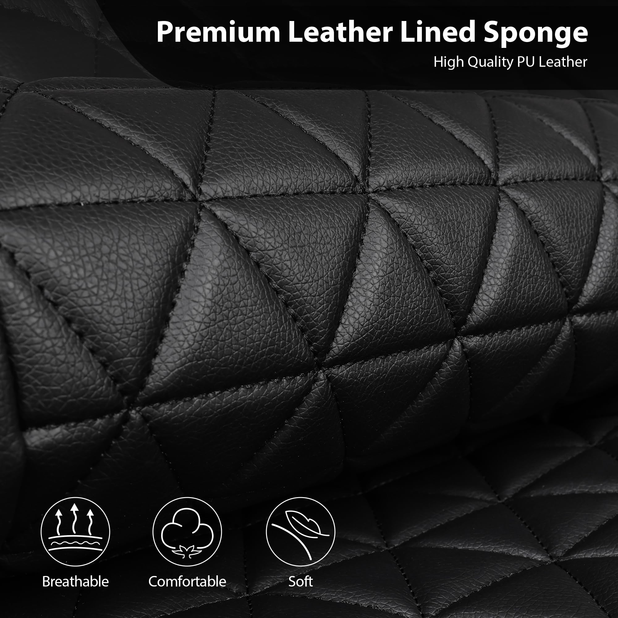 PACKAGING INCLUDING - Includes two front leather seat covers and two removable headrests, ideal for the driver's and front passenger's seats in your vehicle. Protect fits your front seats from scratches, dirt, dander, and spills. Seat covers are removable and washable. The reverse side has anti slip nail bottom, which is anti slip and waterproof. Tightly fit the car seat to ensure driving safety