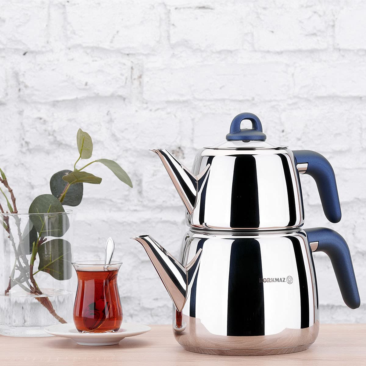 OPTIMUM SIZE: Elegance designed Korkmaz kettle Set is perfect for stylish kitchens. The upper teapot is 1.05 qt and upper tea kettle has a capacity of 2.11 qt.