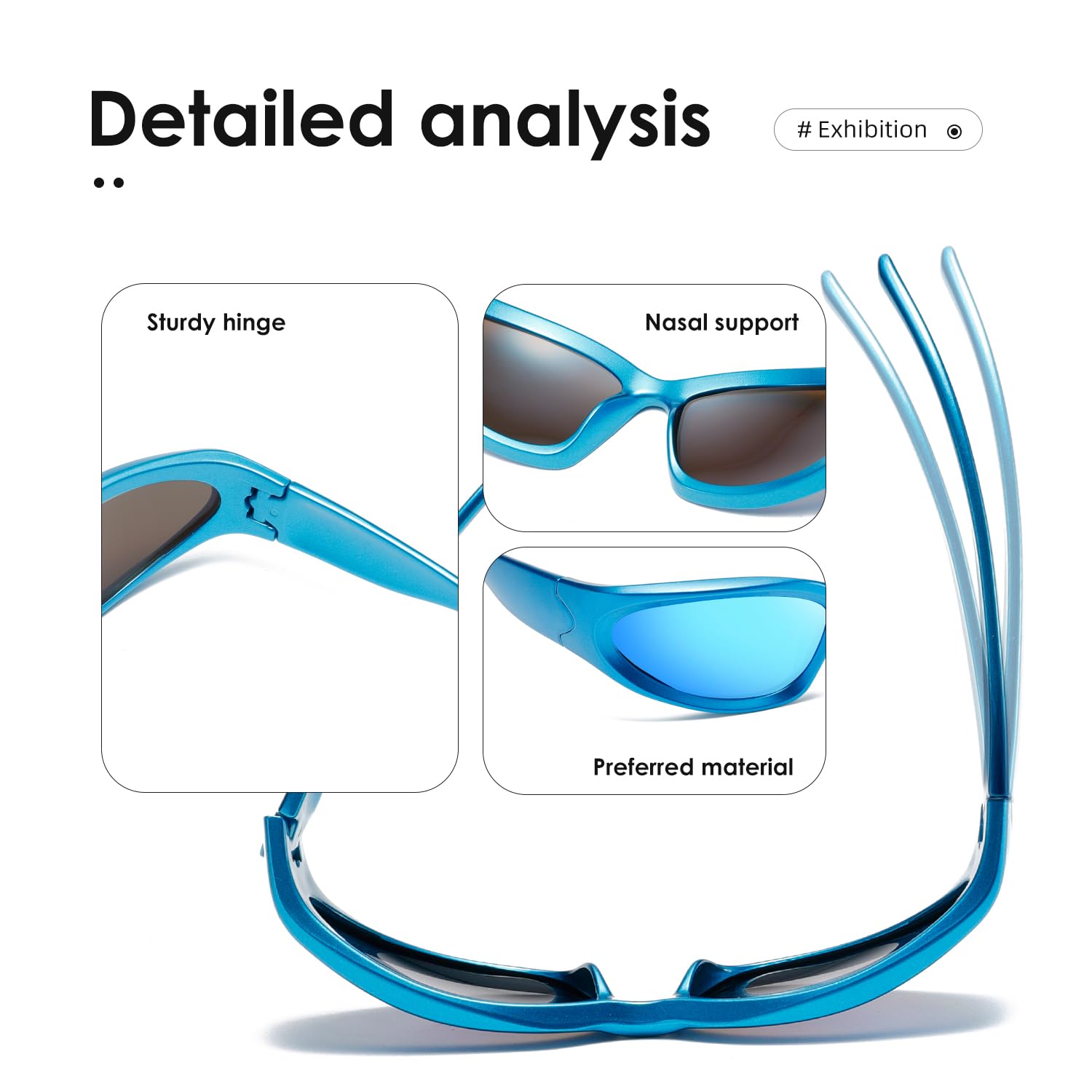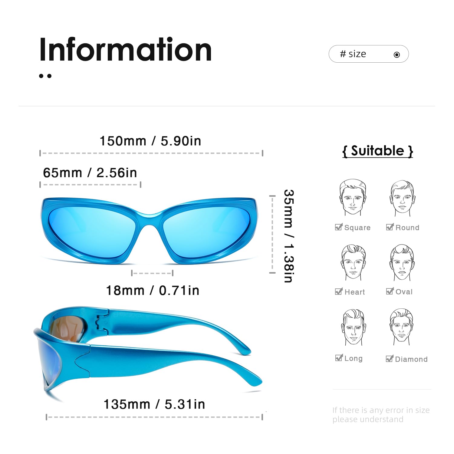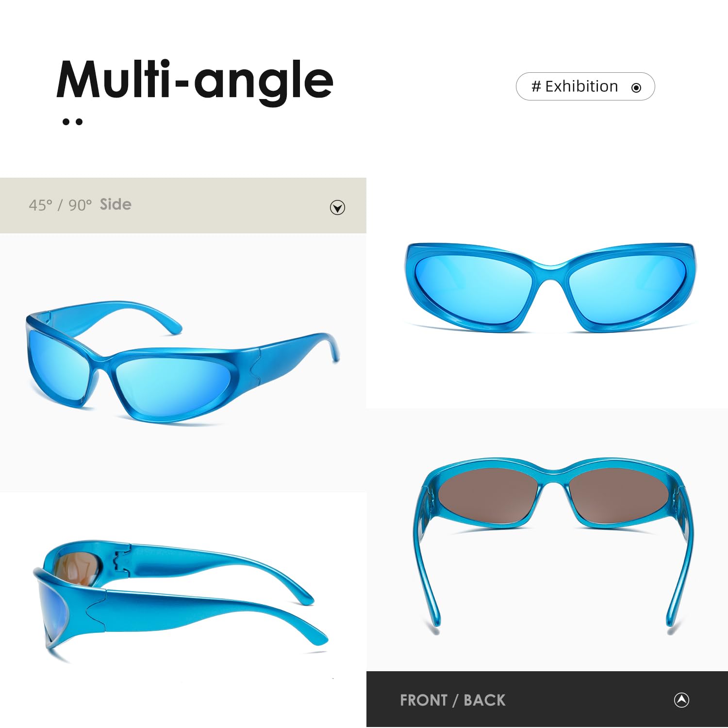 EXCLUSIVE DESIGN-We are dedicated to the development of trendy and unique sunglasses for people who pursue fashion and express their individualities,With retro wraparound eye shape,fit for all kinds of faces.