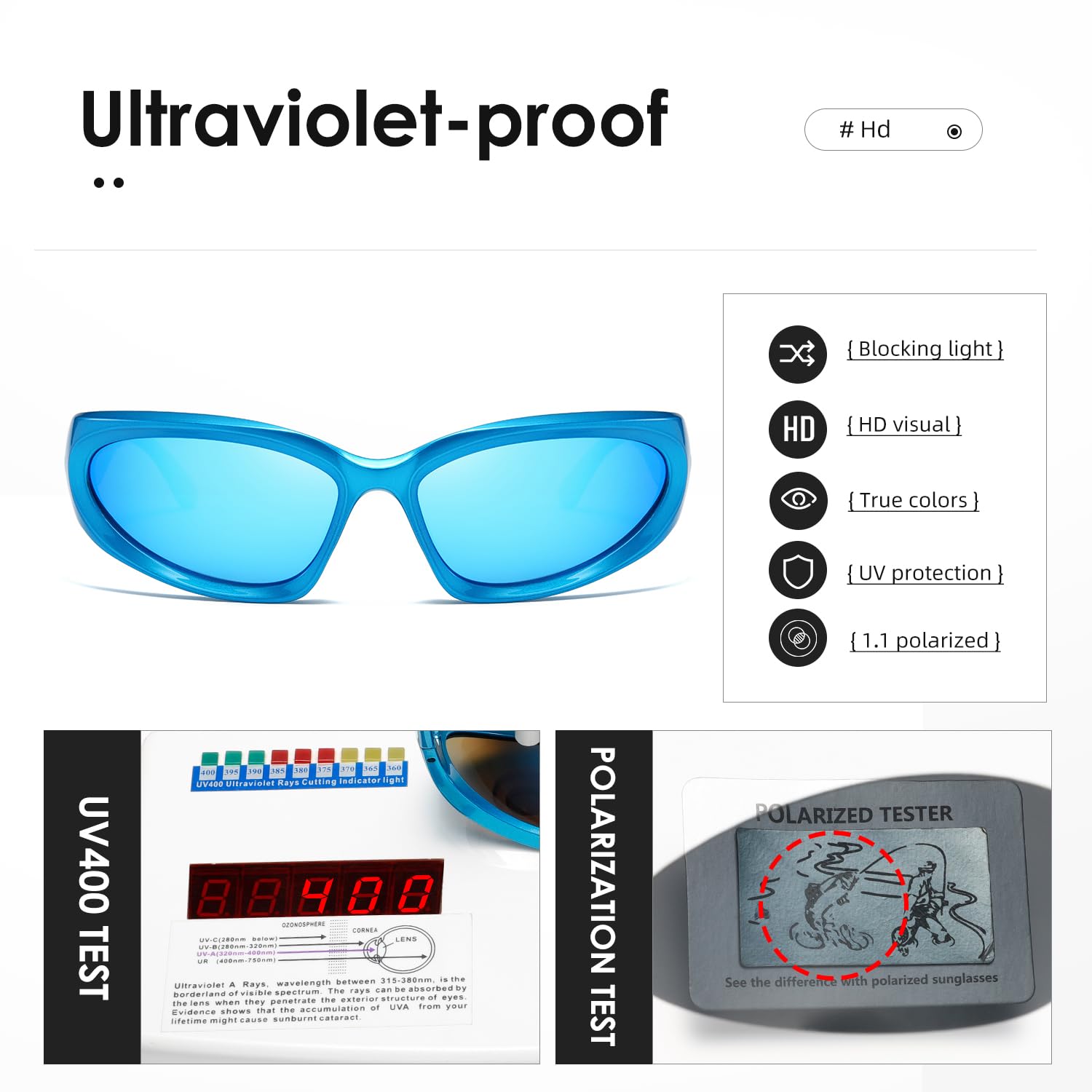 HIGH-DEFINITION UV400 TAC POLARIZED LENSES – Standard sunglasses are great for reducing overall brightness, but they don’t do much for glares, those annoying, vision-blocking bursts of light.Polarized sunglasses stop glare from reaching your eyes