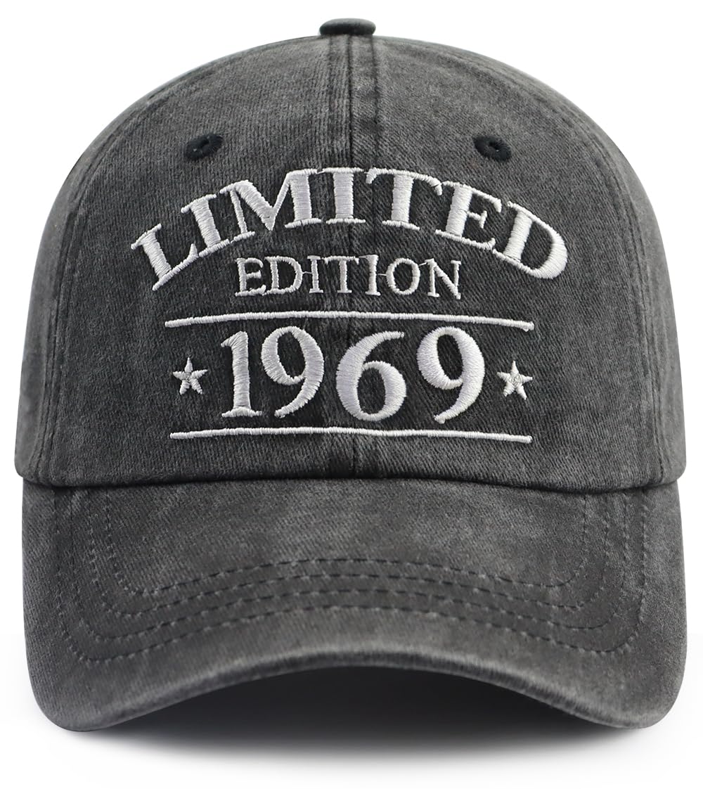 Metal Buckle Closure: 1969 Birthday Gifts Hat for Women Men Baseball Hat, One Size Fits Most, Cap Circumference: 21.65-23.62 Inches/55-56cm. Brim: 2.75 Inches/7cm. Height: 3.54 Inches/9cm. Hats for Men Baseball Cap Adjustable Metal Buckle, Easy and Convenient to Adjust the Tightness According to the Head Circumference, Serrated Metal Buckle, Solid and Reliable. It Adjusts to Fit a Fairly Large Head.