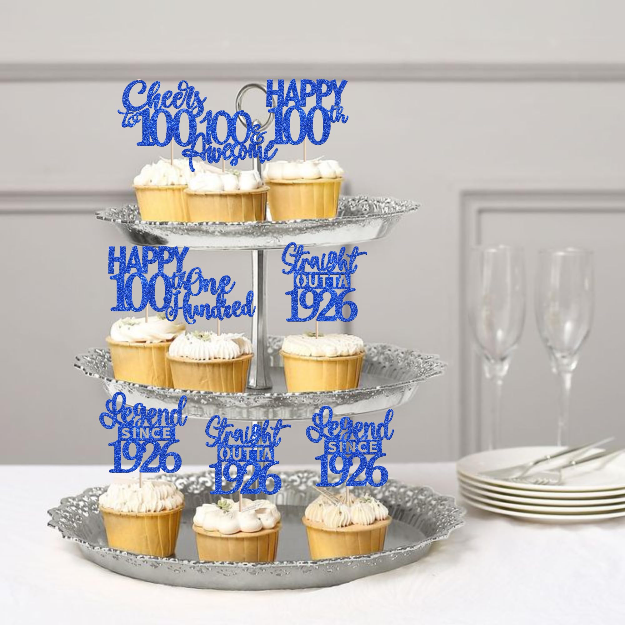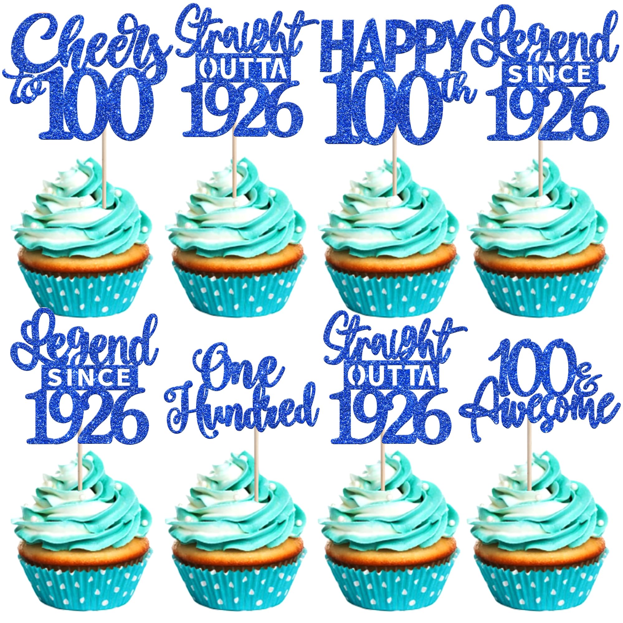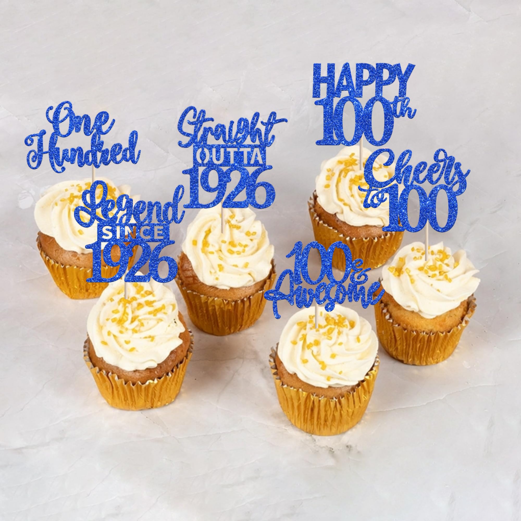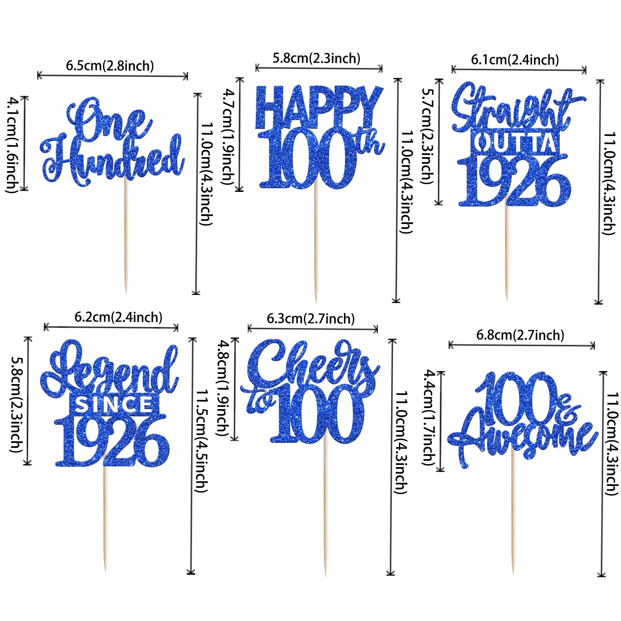 24PCS Happy 100th Birthday Cupcake Toppers One Hundred Straight Outta 1926 Cupcake Picks Cheers to 100 Birthday Decorations Lengend Since 1926 Cupcake Decorations for 100th Birthday Anniversary Party Cake Decorations Supplies Perfect for legend since 1926 theme party, 100th anniversary theme party,cheers to 100 years theme party, 100 awesome theme party cupcake decorations supplies. Pack of 24 pcs,4 pcs of each design. The size is 2.8*4.3/ 2.3*4.3/ 2.4*4.3/ 2.4*4.5/ 2.7*4.3/ 2.7*4.3 inch ( with stick ) Made of high quality paper card stock,thick and sturdy. These straight outta 1926 cupcake toppers are one side glitter, another side is white, and they are intended for decoration only, please do not put them in oven or microwave. If the item you received has any defects, please contact us immediately.we will deal with it within 24 hours.