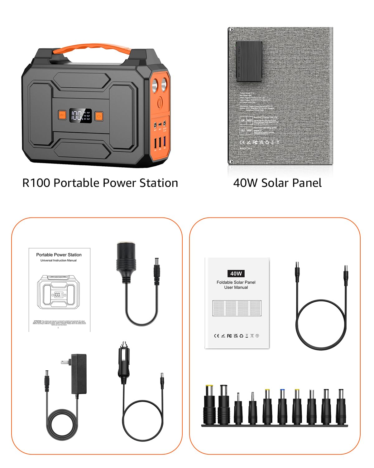 WHAT YOU GET: Apowking 146Wh solar generator power station with 40W solar panels included x 1, AC power adapter x 1, car charging cable x 1, cigarette lighter adapter x 1, user manual x 1. This solar powered generator power station with solar panels included is covered by our 12-month customer support, so please contact our Customer Service if you have any questions at any time.