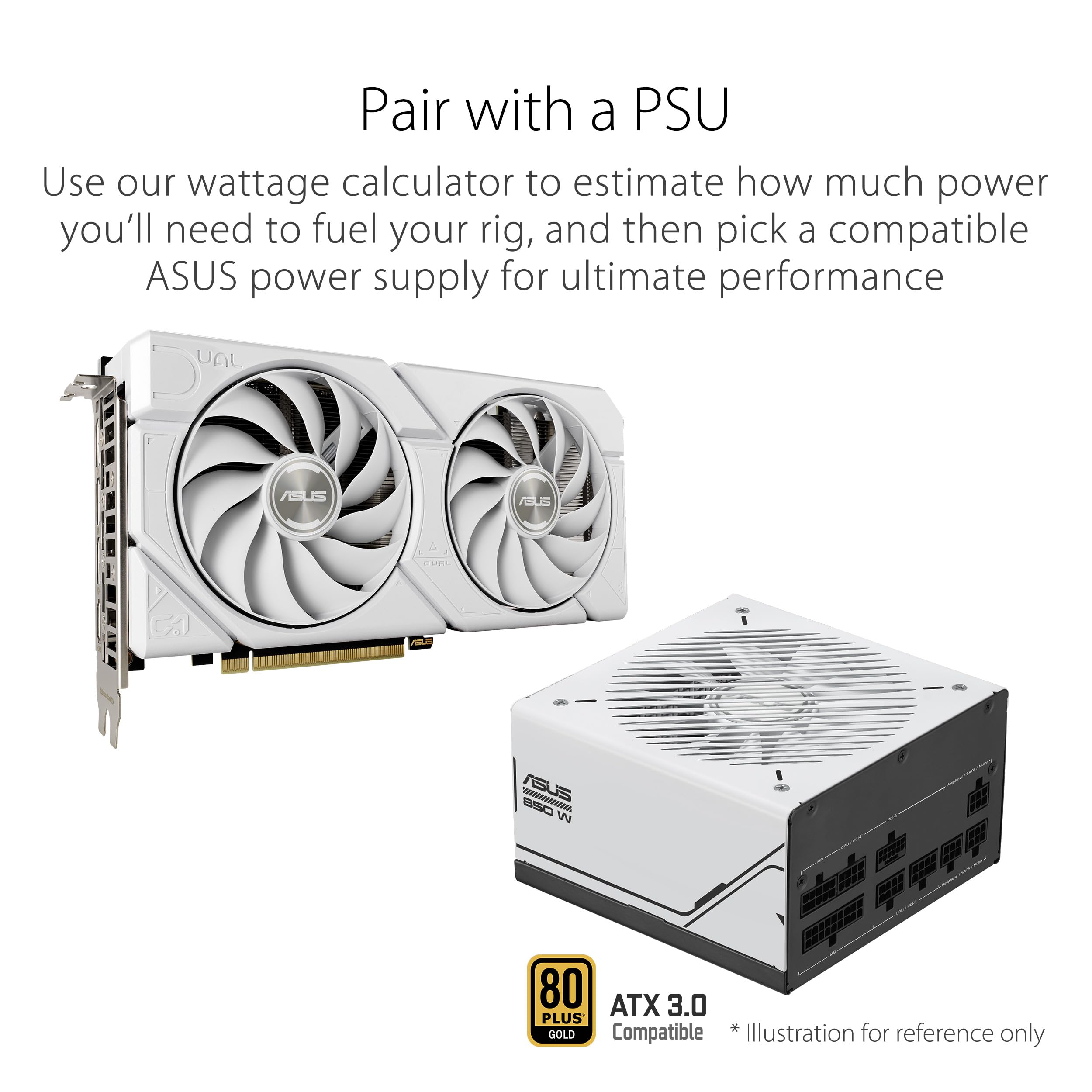 ASUS Dual GeForce RTX™ 4060 EVO White OC Edition fuses dynamic thermal performance with broad compatibility make ASUS Dual the perfect choice for gamers who want heavyweight graphics performance in a compact build.