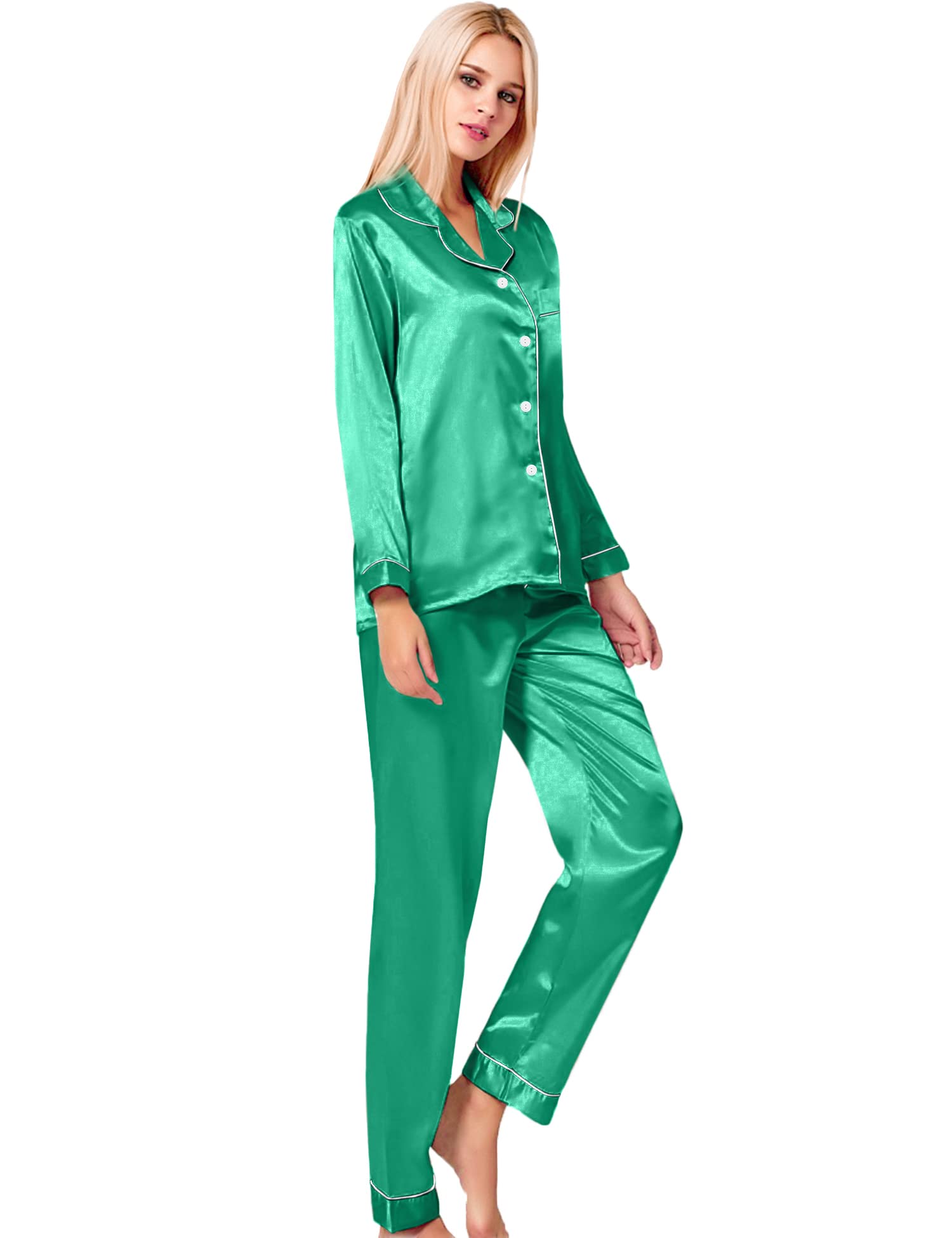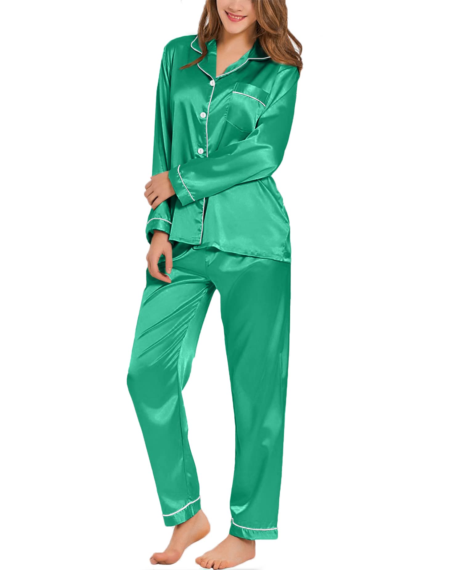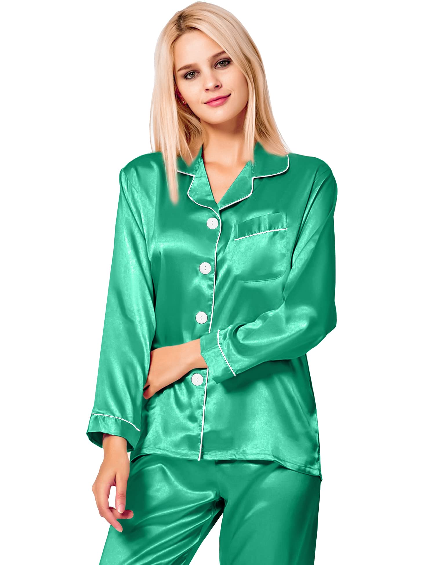 Gift: Women's silk pajamas for women is made of high quality imitation silk fabric, it is soft and natural shiny. Great Choice For your Wife, Girlfriend, Mother, Sister and Doughter as a Birthday gift and Great Present for New Year, Valentine's Day, Christmas Day, Bridal Party Gifts, Honeymoon Vacation or other Festivals or Anniversaries.