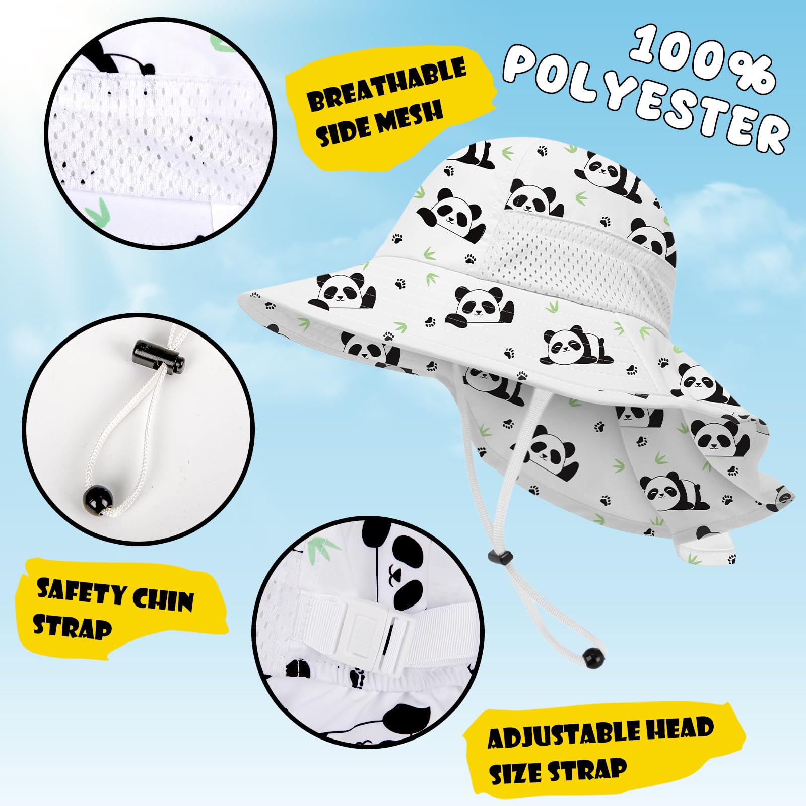GREAT SUN PROTECTION: The kids sun hat features highest rated UPF 50+ sun protection, which blocks up to 98% of UVA and UVB Rays! Its 3" wide brim and 5.4"long neck flap help to cover kid's face, ears, back and neck, thus protecting the delicate skin from sun burn better