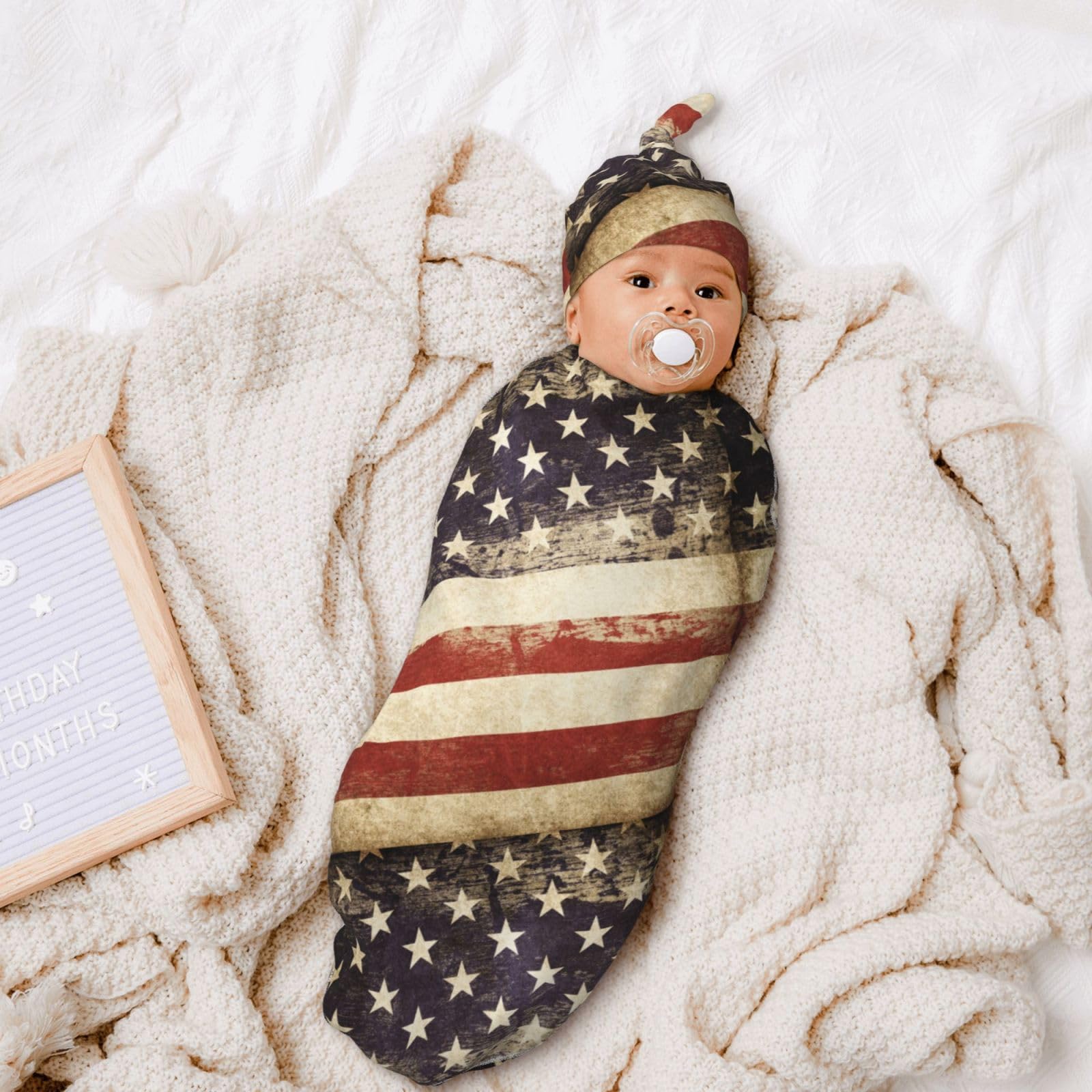 Size:1pcs Baby Swaddle Blanket Is 11.4*21 In, 1pcs Matching Hat Is 6.3*13 In. Suitable For Unisex Babies Aged 0-6 Months.