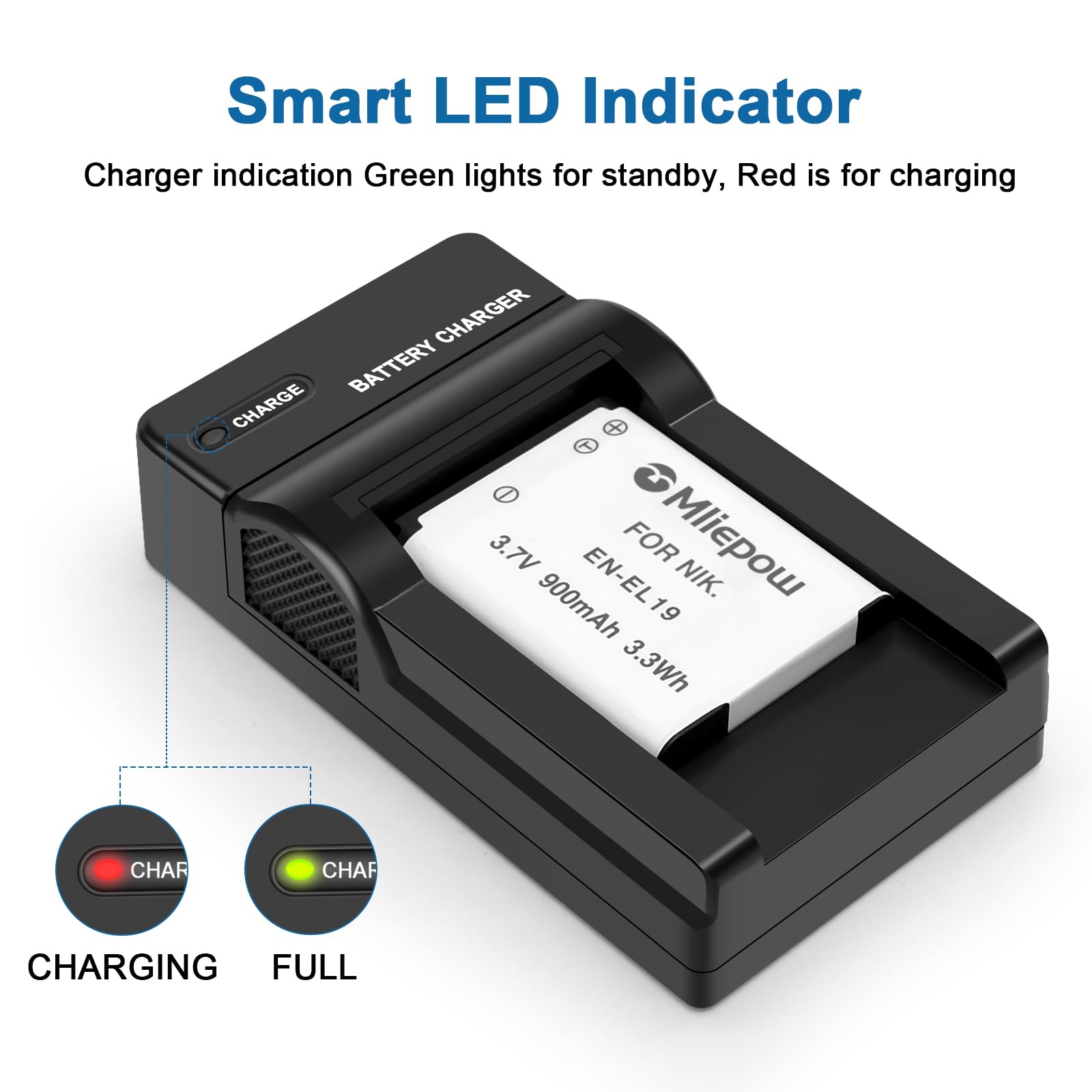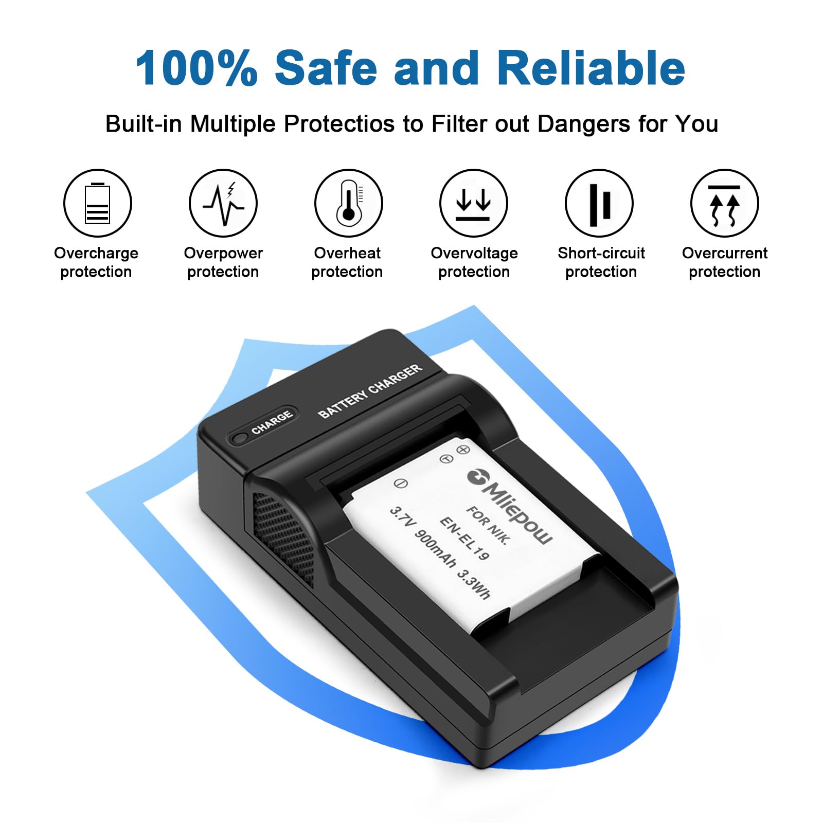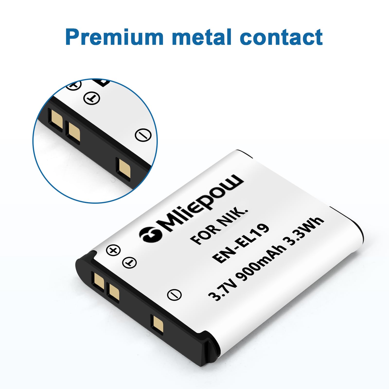 EN-EL19 Battery Specifications - Capacity: 900mAh /Voltage: 3.7 volts, Battery Type: Lithium-ion. CE Safety Certification. No Memory Effect , More lasting.