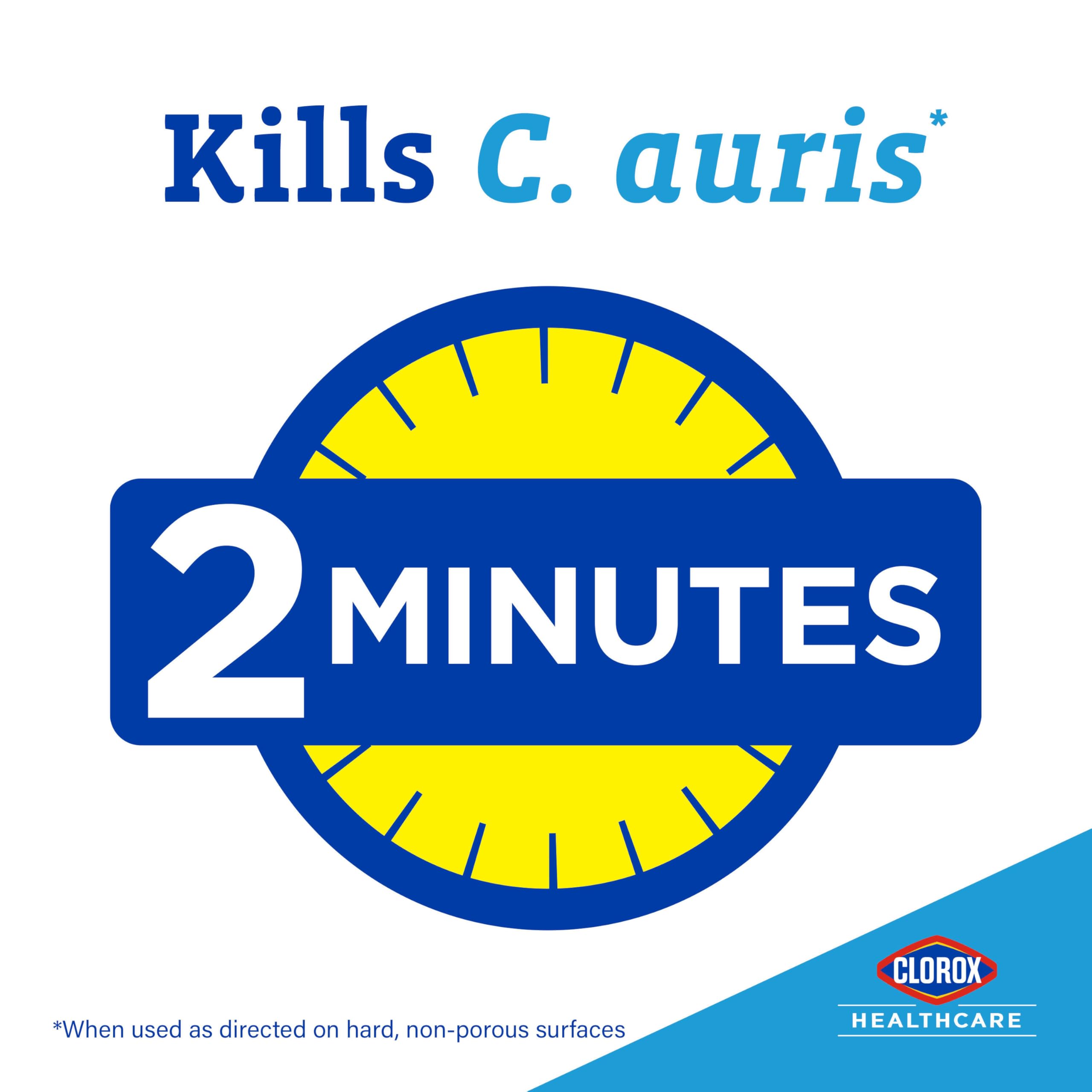 Product Description Great surface compatibility, low residue, fast kill times (1). Clorox Healthcare Hydrogen Peroxide Cleaner Disinfectant is EPA registered to kill over 40 microorganisms in 1 minute or less, including C. auris, VRE, CRE and MRSA. This disinfectant spray also kills biofilm bacteria (2) in 2 minutes. Clean using a non corrosive disinfectant tested on medical devices and save time with a fast, non bleach formula (1). Clorox hydrogen peroxide disinfectant is a bleach free sanitizer that is EPA registered to kill bacteria on soft surfaces in 30 seconds (3). Use hydrogen peroxide disinfectant in hospitals, operating rooms, outpatient centers, emergency rooms and long term care facilities. (1) Use as directed on hard, nonporous surfaces. (2) Klebsiella aerogenes, Staphylococcus aureus. (3) Pseudomonas aeruginosa and Staphylococcus aureus. Manufacturer Contact Information 1-800-234-7700