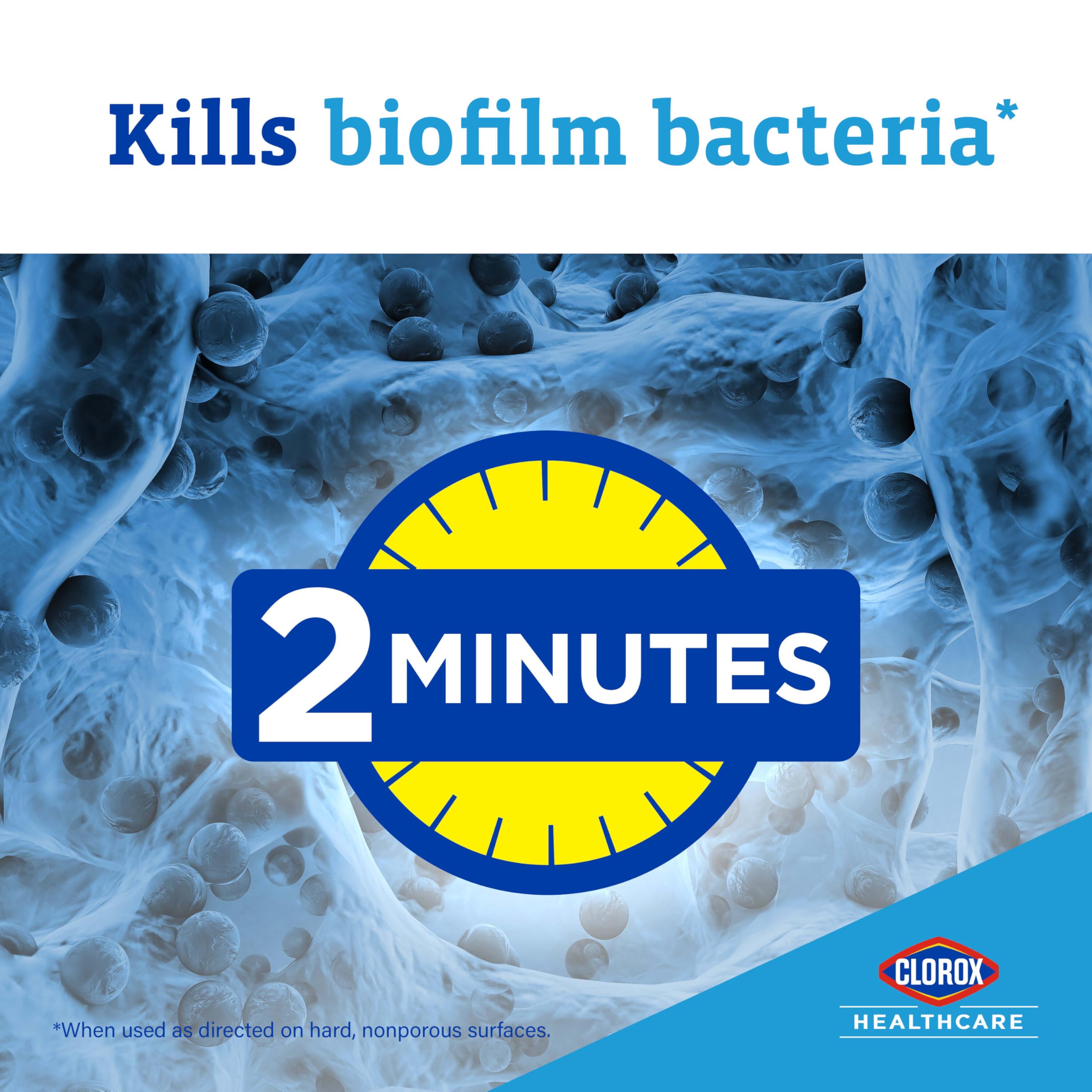 HYDROGEN PEROXIDE DISINFECTANT: Clorox Healthcare Hydrogen Peroxide Cleaner Disinfectant delivers great surface compatibility, low residue and fast kill times (1); pack may vary