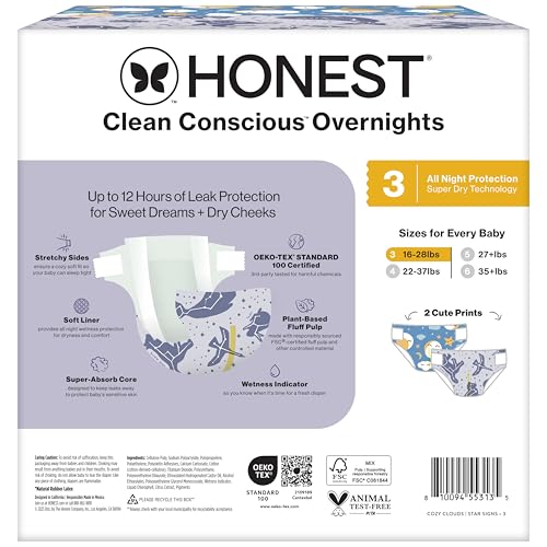 Goodnight, baby! Get ready for a good night’s rest with Clean Conscious Overnight Diapers™! Now with new fun prints and a wetness indicator to let you know when it’s time for a change, our diapers are soft inside and out for ultimate comfort. Our overnight diapers keep your little one dry and comfy to help ensure an uninterrupted night’s sleep - for both you and your babe! New, improved + ready to snooze! We've got you and babe's bum covered! Our New Overnight Diaper provides all-night wetness protection while keeping your baby's sensitive skin happy. Now with a wetness indicator and new fun prints, your baby will stay snuggled and stylish all night long!