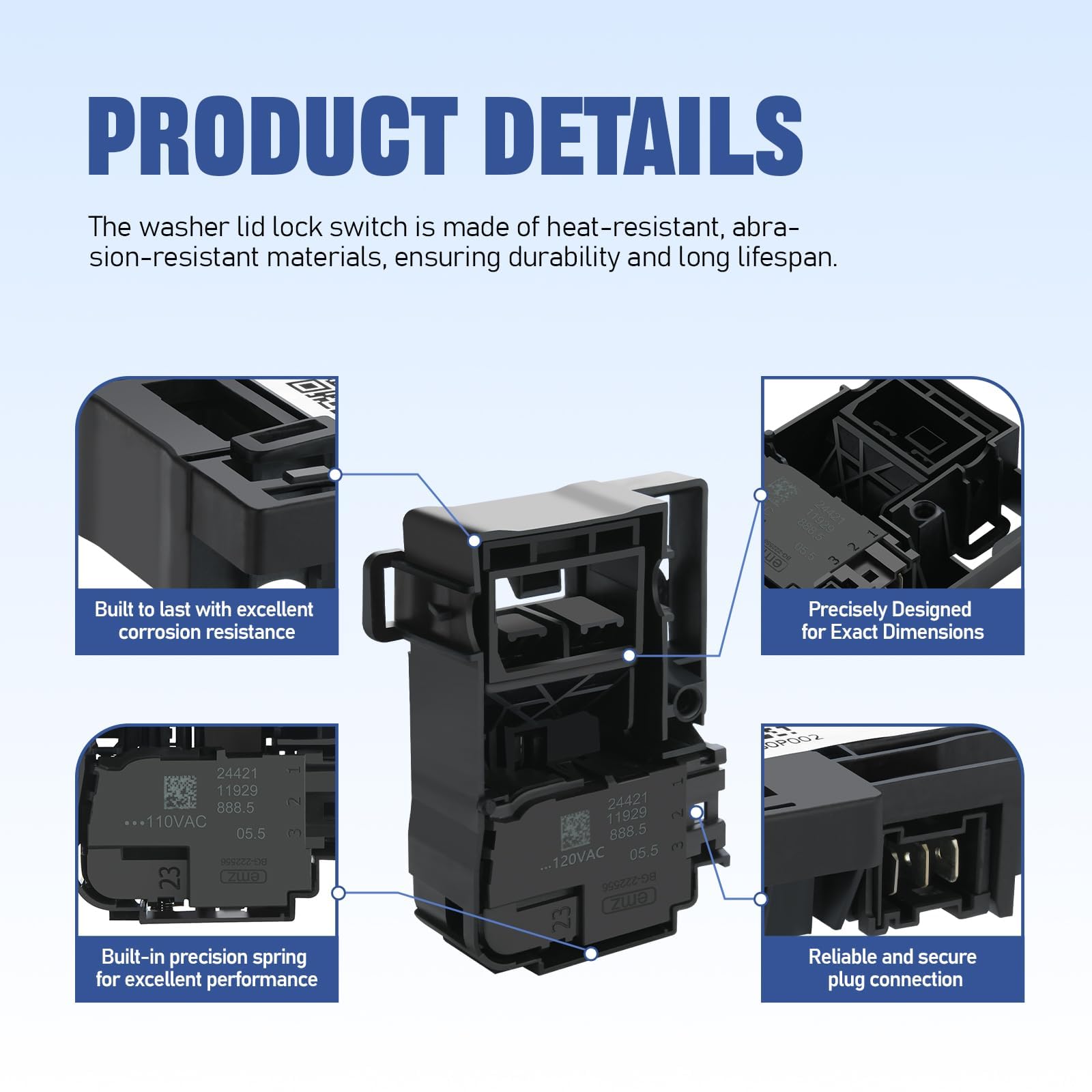 Durable construction: Made from durable materials, this washer lid lock switch ensures long-lasting performance and safety, for reliability
