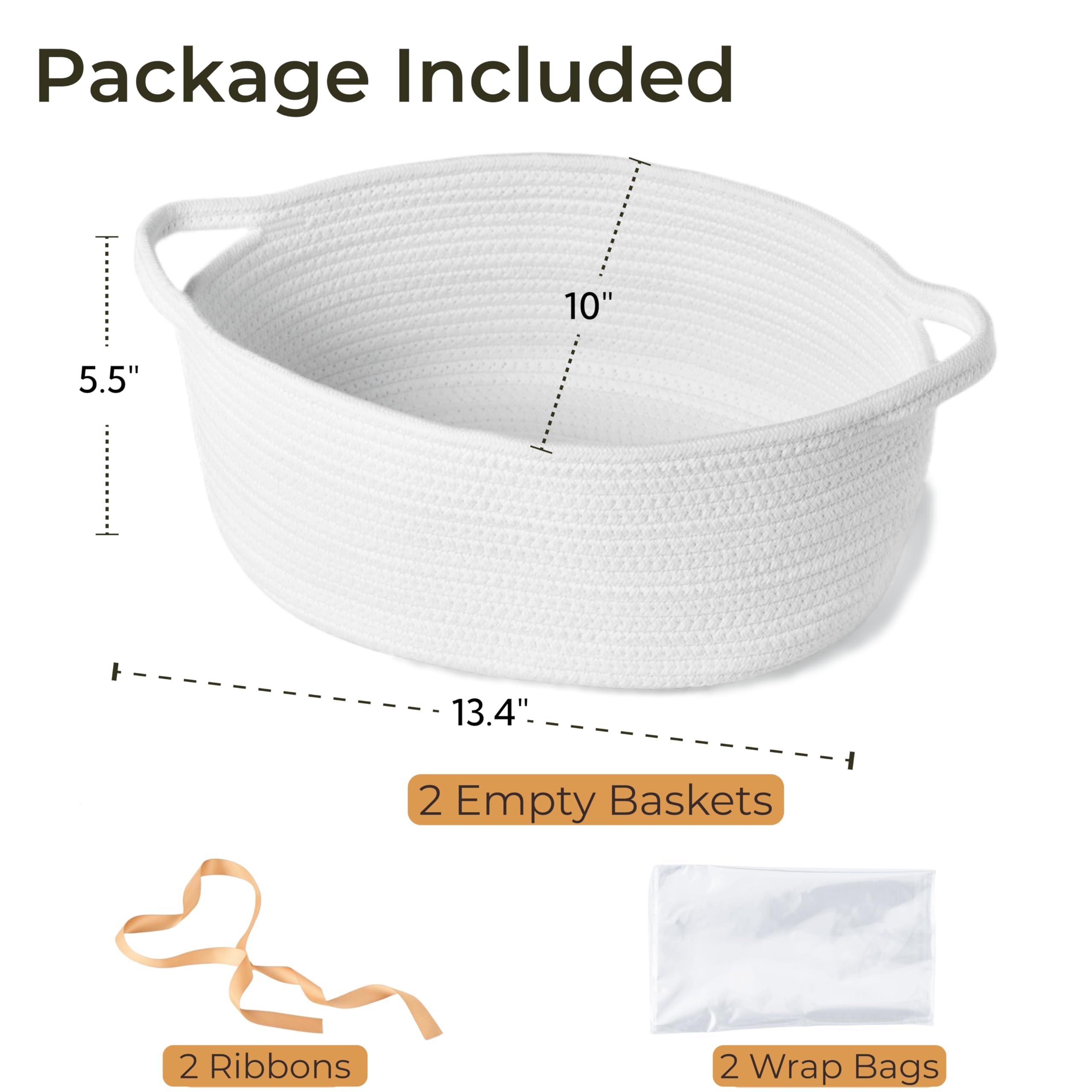 Complete Gift Wrapping Sets: Include 2 empty woven baskets, 2 wrap bags, and 2 ribbons; perfect for creating beautiful and personalized gift presentations