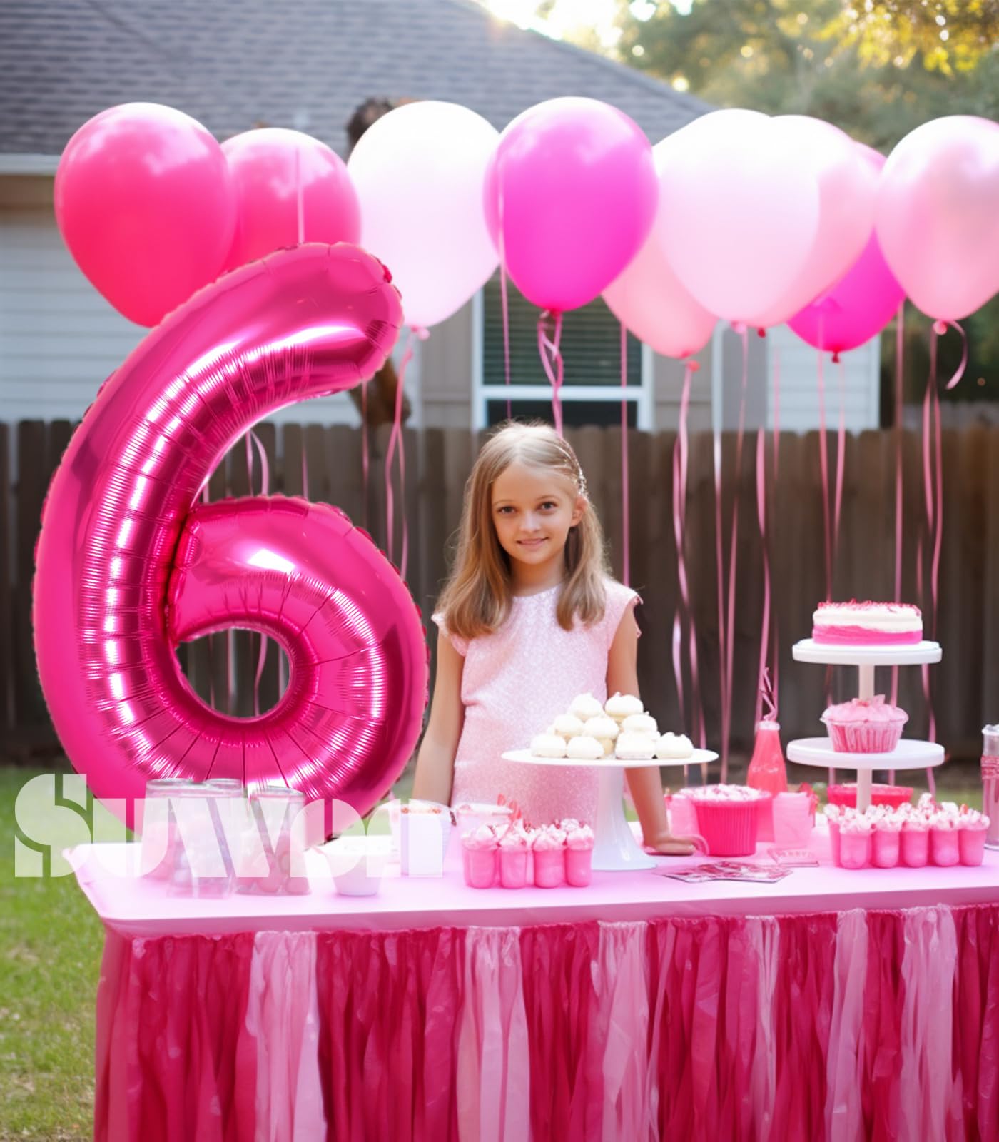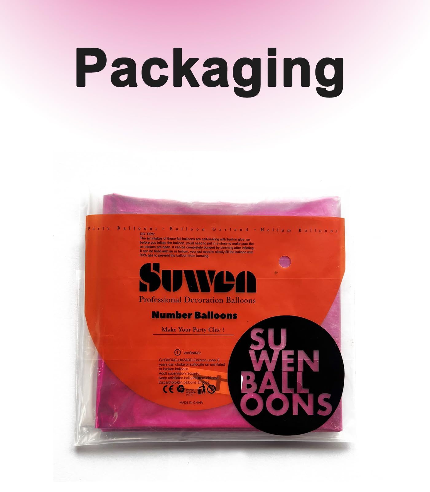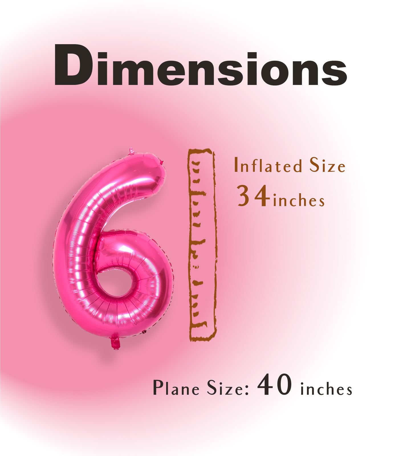 [ Jumbo Sized ] - SUWEN provides 40 inch 0-9 giant hot pink number balloons. This package contains a hot pink number 6 foil balloon, and an inflatable straw to make inflation and deflation more convenient