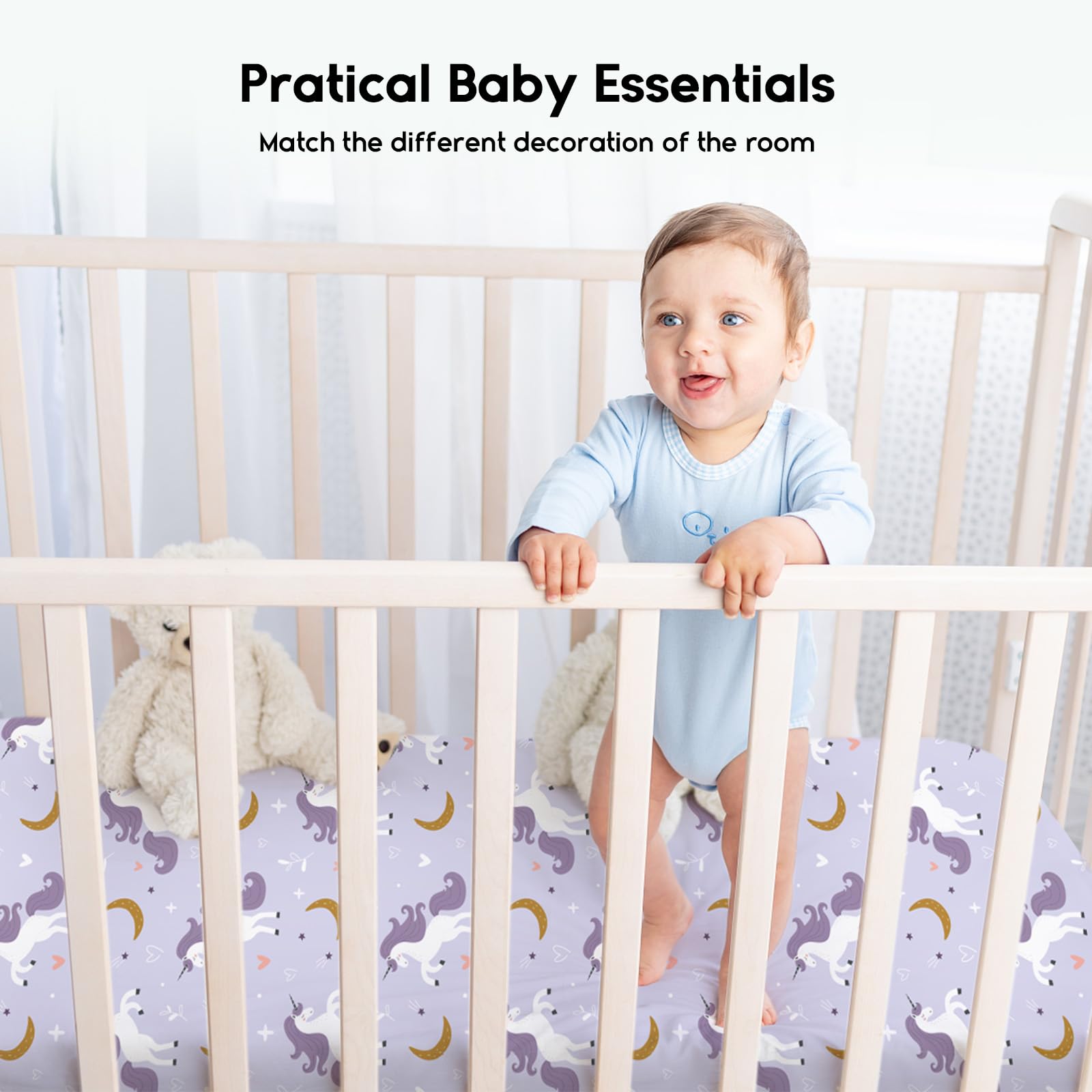 PRATICAL BABY ESSENTIALS: We provide a variety of colors, you can choose to match the different decoration of the room. Our comfortable crib sheet for boys and girls is good enough to help baby get better sleep day or night!