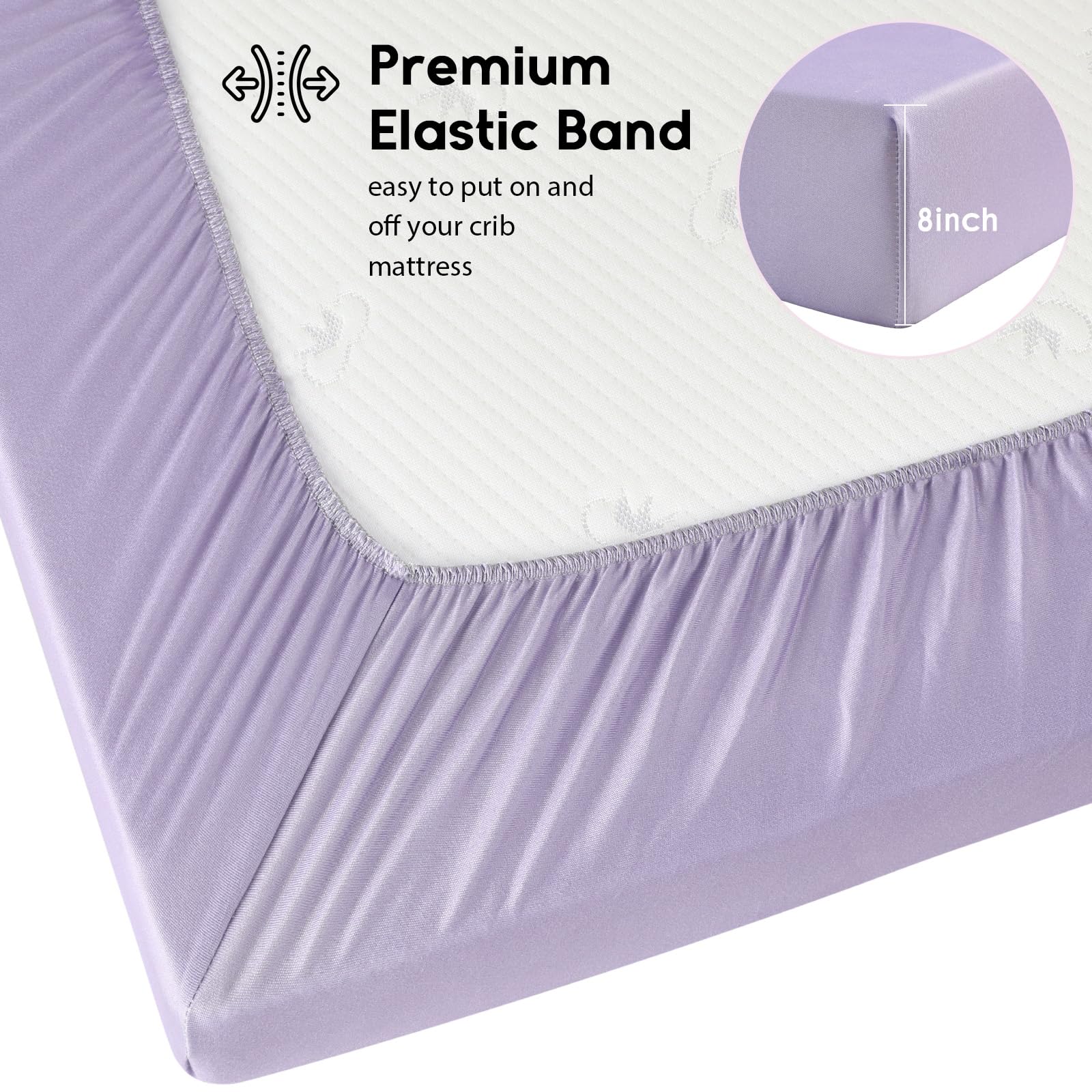 BETTER FIT: Measures 52”X 28”, our crib sheets can snug fit most standard crib and toddler bed mattresses. 8'' deep pocket provides a safe and secure 360 degree coverage and protection for your luxury mattress.