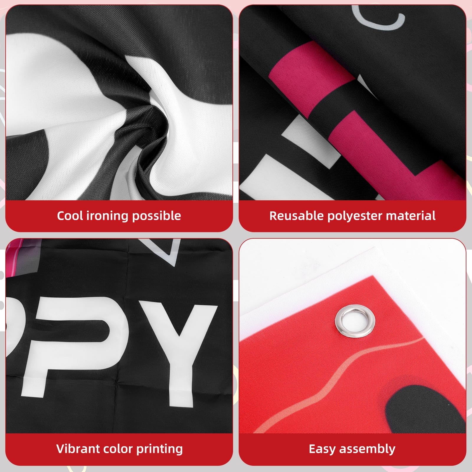 Quality Material: Made of quality polyester material, the birthday backdrop decoration is durable and reliable, and does not easily fade. You can buy with confidence.