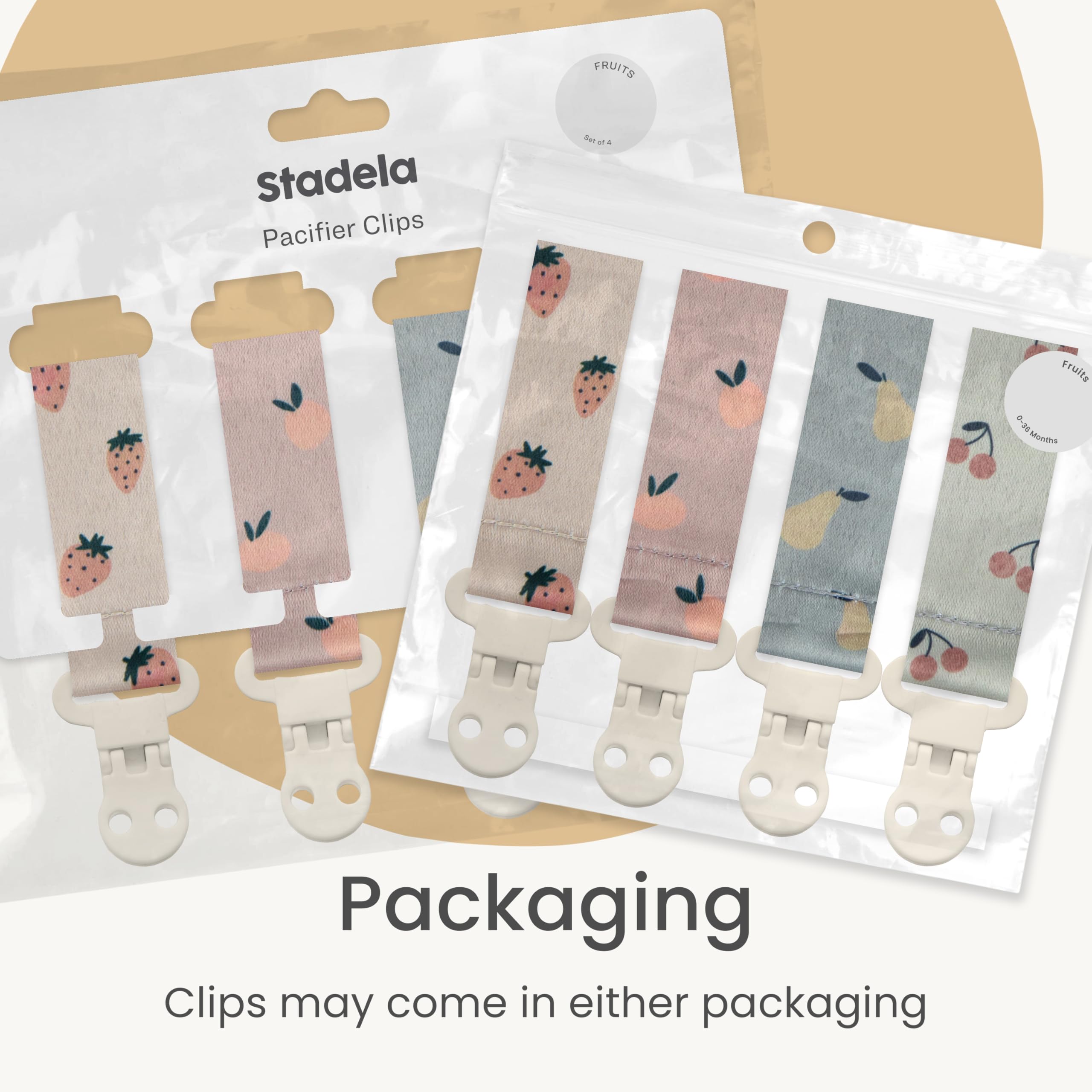 Stadela pacifier clips are essential accessories designed to ensure your baby's soothing pacifier is always within reach and kept clean. These versatile pacifier leashes are compatible with most of pacifier types, and they can even secure some teethers.