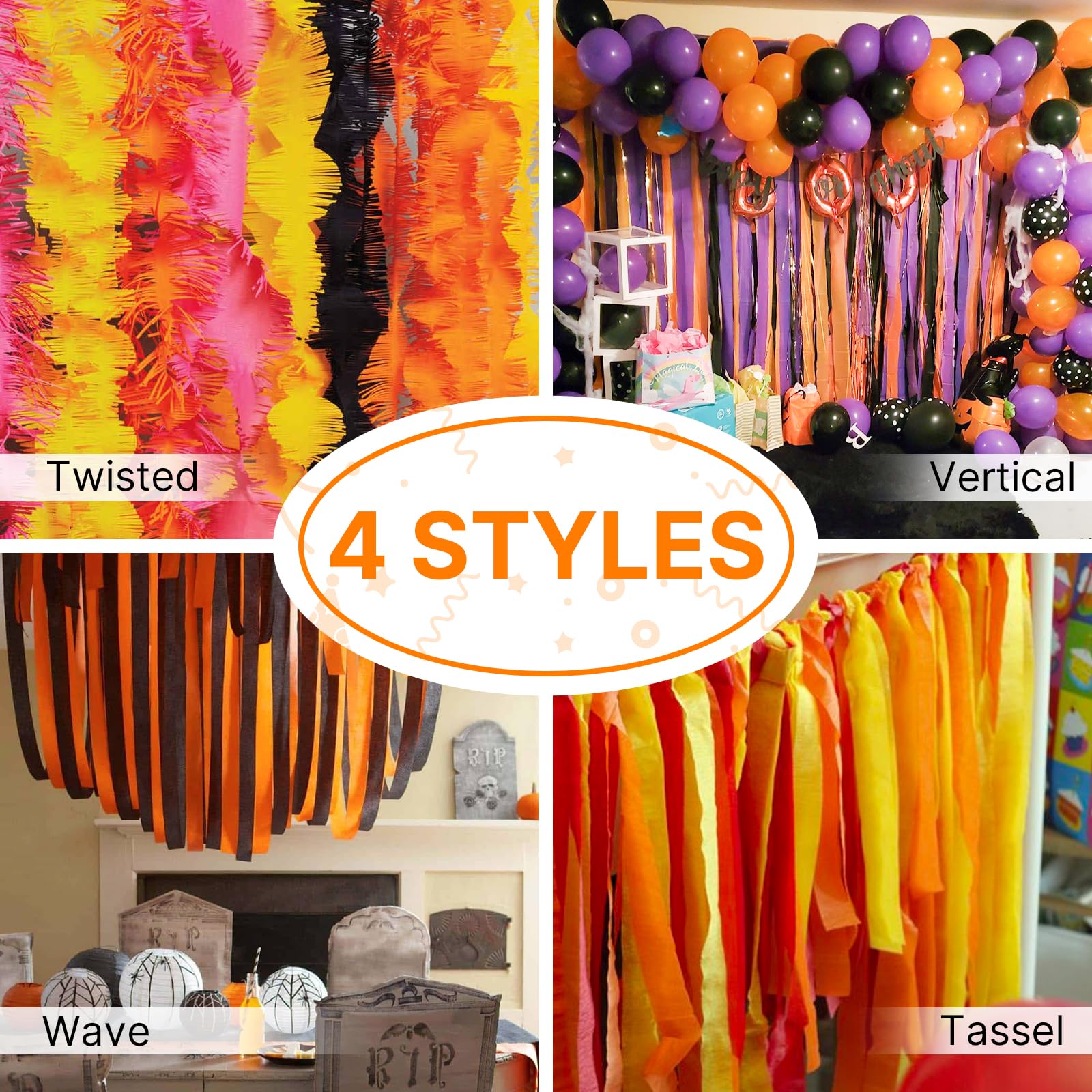 Easy to Decorate:These orange crepe paper streamers are easy to untie.You can twist paper streamers together into spirals, Use the crepe paper roll for backdrop, match different colors to give your baby shower or bachelorette a customized look