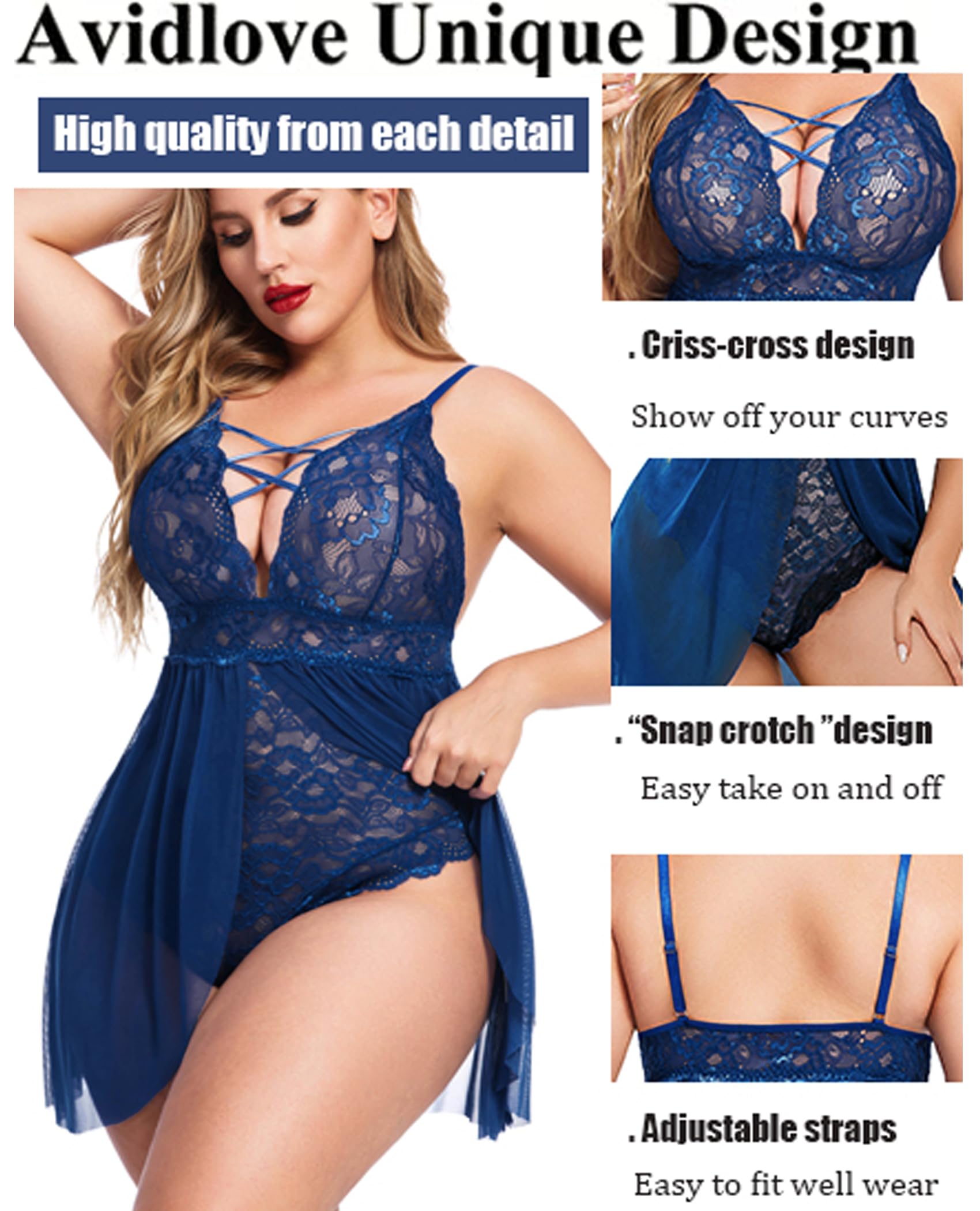 Details: Sexy babydoll lingerie with full lace cups and criss-cross detailing, adjustable spaghetti straps, lace underbust band, and mesh skirt with vented front, all this features allows this chemise easy to fit and comfortable to wear