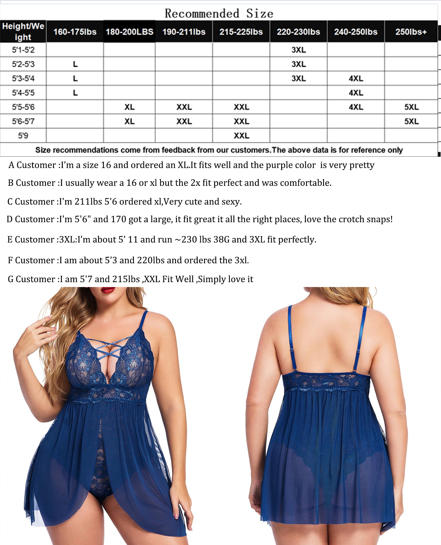 Material: Lace babydoll Lingerie made of 95% polyester and 5% spandex, this soft lace and mesh is stretch and breathable with unique pattern adorned. This chemise perfectly shows your body line, flattering and sure to draw your lover's attention