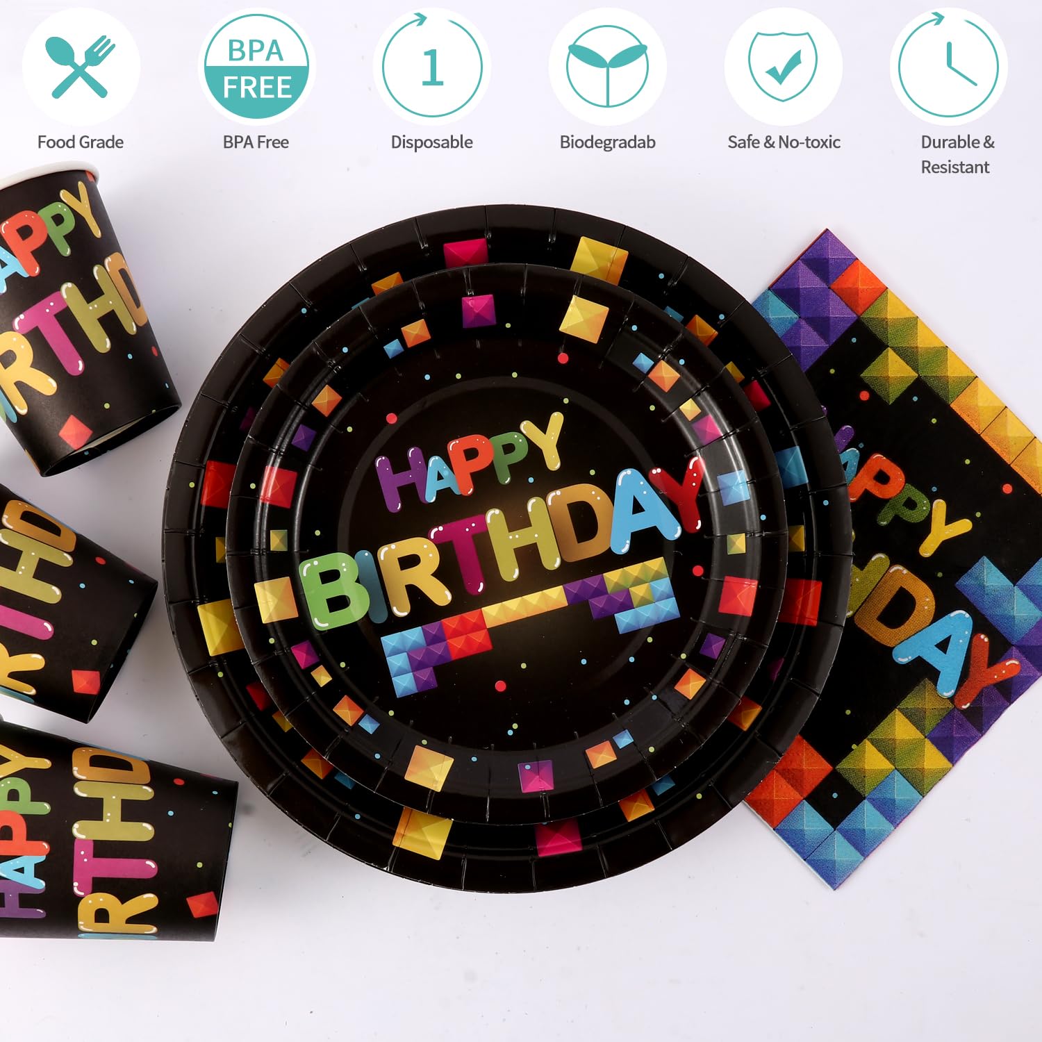 PERFECT FOR ALL OCCASION: Our disposable is signed for all events and occasions such as Weddings, Birthdays, Thanksgiving parties, Christmas parties, Home Dinners, Graduation, Bachelorette parties and more. Especially suitable for Birthday Party!