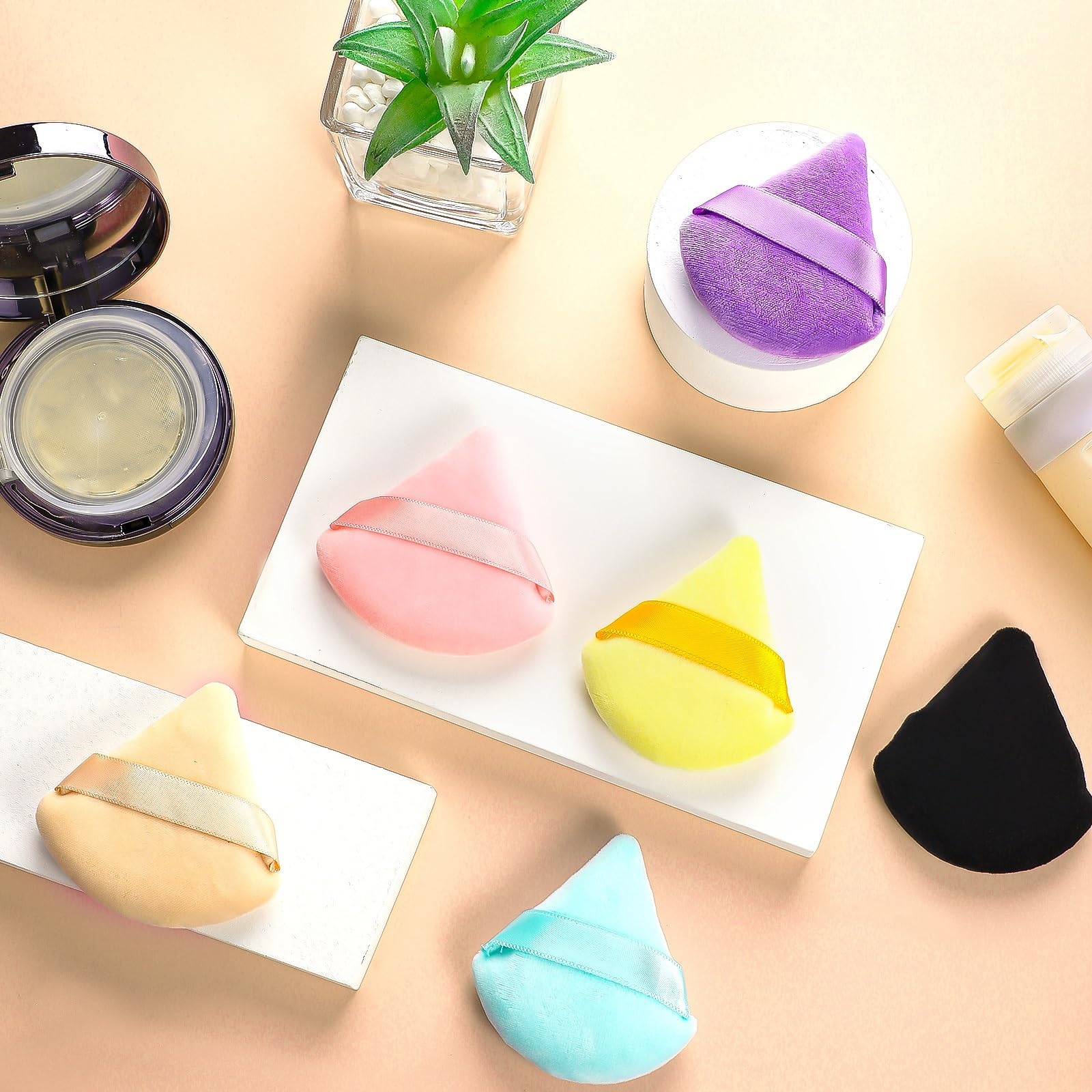 Design for Flawless Makeup: Our powder puff features a unique triangle and circle design. The round side is perfect for applying foundation on your cheeks and forehead, while the triangle side is ideal for application on the eyes and contour.